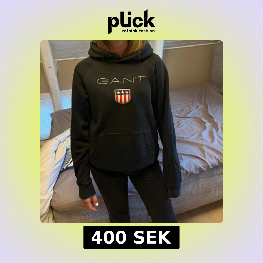 Svart hoodie från GANT med broderad logga och sköld på bröstet. Använts några gånger. Klassisk känguruficka framtill och huva. Perfekt för dig som gillar stilren och sportig look. Mjuk och skön bomullsmix som passar till många outfits.