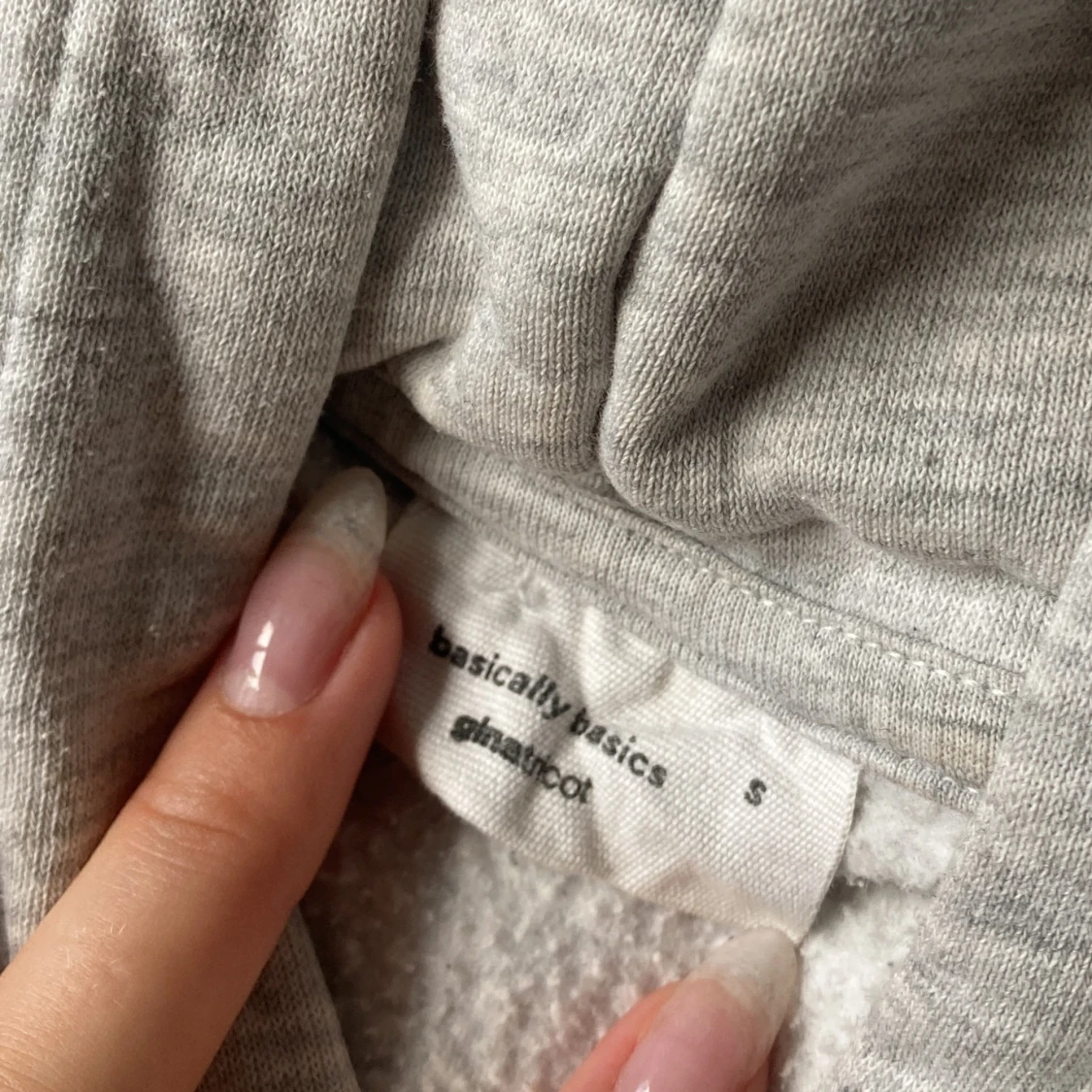 Säljer en ljusgrå hoodie från Gina Tricot, basically basics-kollektionen. Tröjan har huva, magficka och ribbade muddar vid ärmslut och nederkant. Perfekt för chill dagar eller när du vill ha en enkel och clean look.