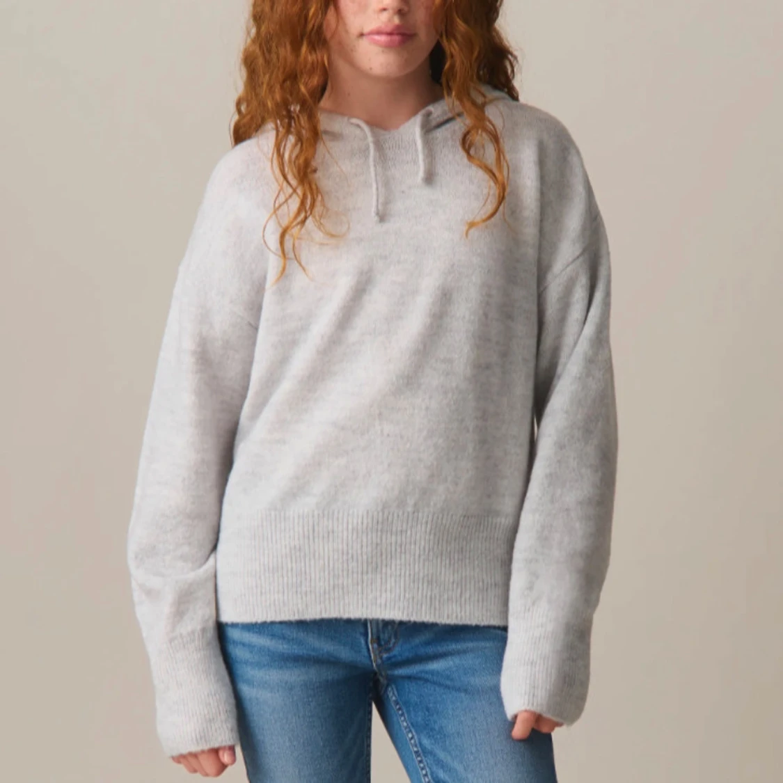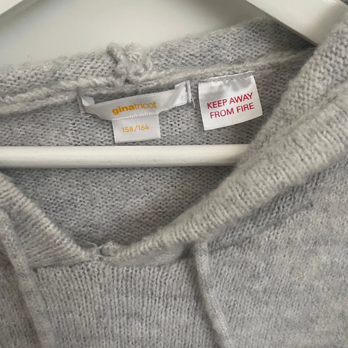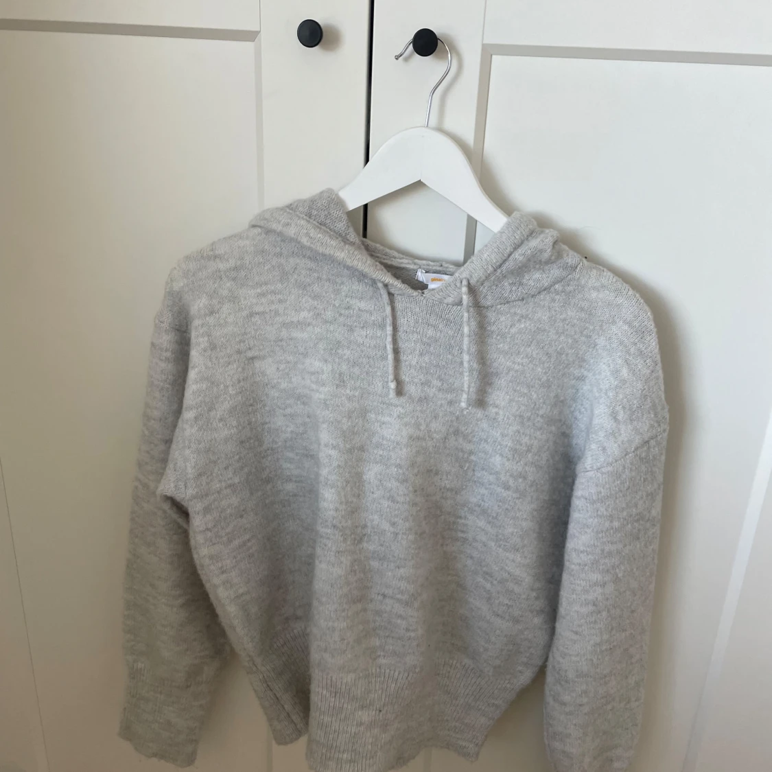 Mysig ljusgrå stickad hoodie från Gina Tricot. Modellen heter Y knitted hoodie strl 158/164, den är i nyskick och använd fåtal gånger🤍