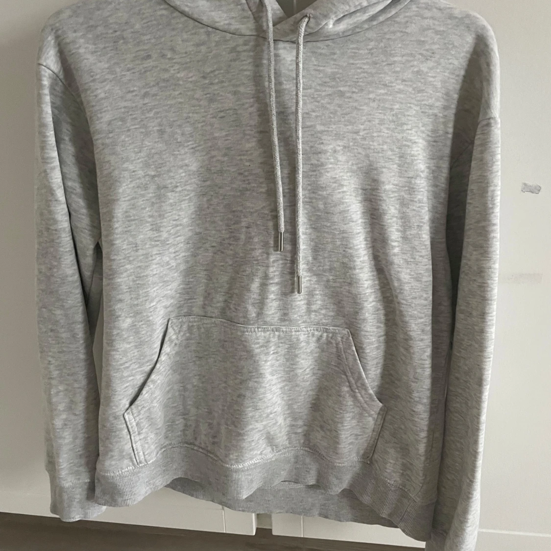 Säljer en klassisk grå hoodie från H&M i storlek XS. Den har en bekväm passform med känguruficka och justerbar huva med dragsko. Perfekt för en avslappnad stil.