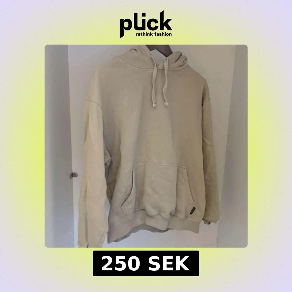 Säljer en stilren beige hoodie med känguruficka och justerbar huva. Perfekt för en avslappnad look.