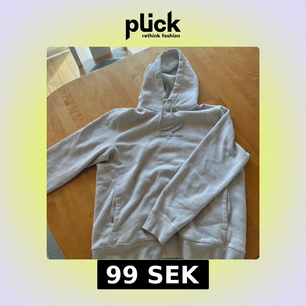 Säljer en stilren ljusgrå hoodie i storlek M från L'Atelier Archives Paris. Tröjan har huva med dragsko och tryckt logga på bröstet. Mjukt material och klassisk passform med ribbade muddar vid ärmslut och nederkant.