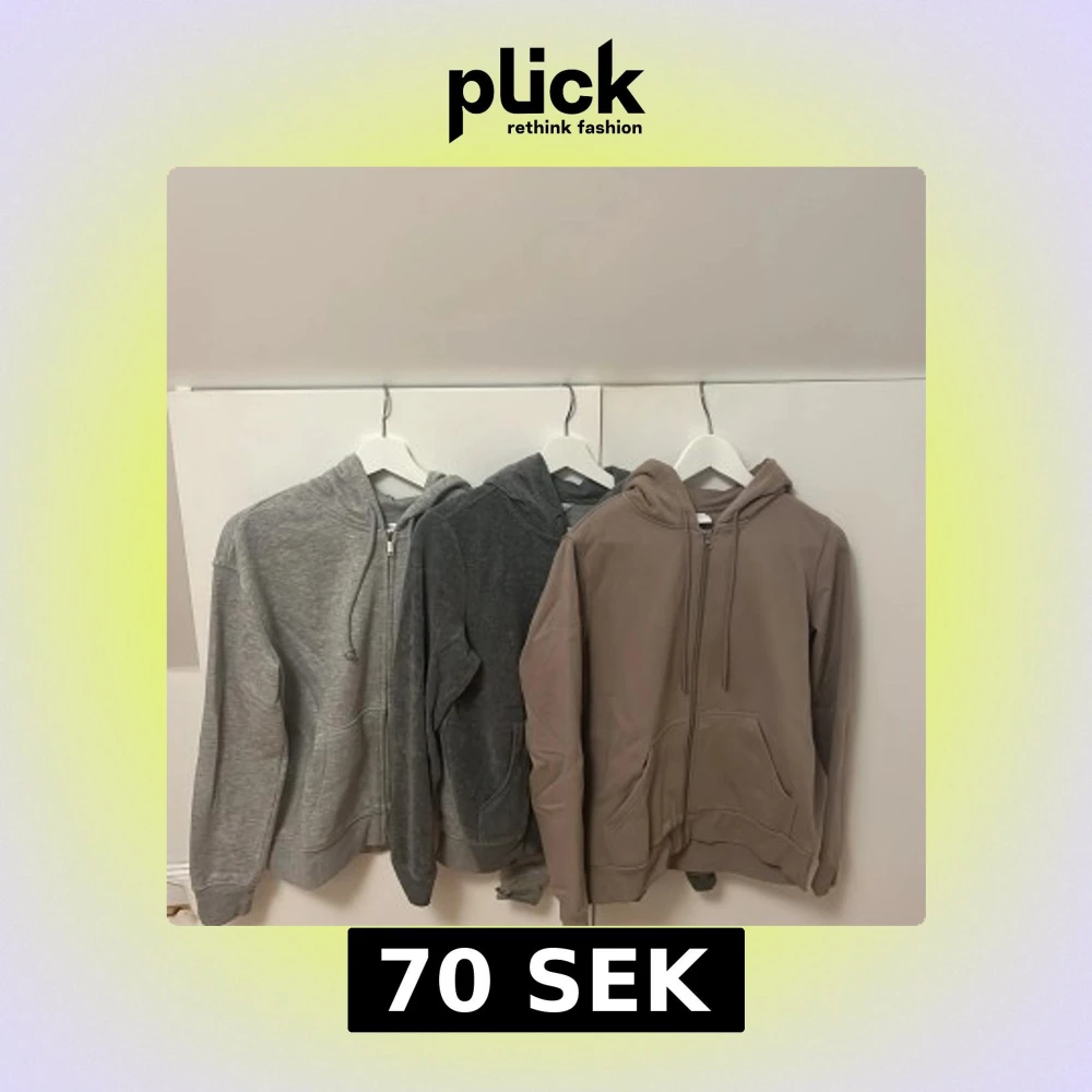 Säljer tre bekväma hoodies i olika färger: ljusgrå, mörkgrå och beige. Alla har dragkedja och huva, perfekta för en avslappnad stil. Passar bra till både jeans och mjukisbyxor, 70kr/st