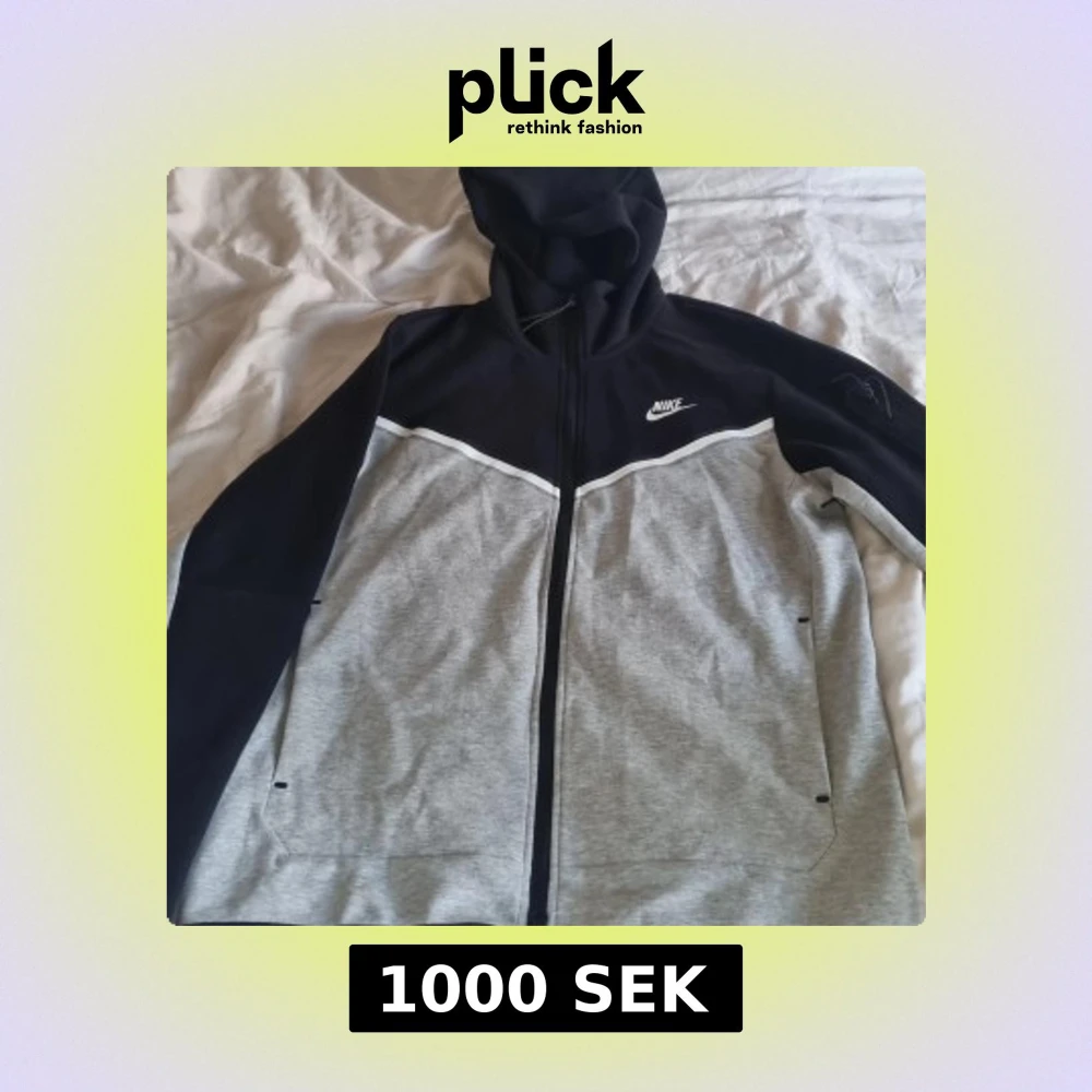 Nike hoodie i svart och ljusgrå med vit logga på bröstet. Tröjan har huva, och två fickor framtill. Materialet är mjuk bomull och polyester, säljer dessa kläder här på grund av storleken helt ny oanvänt och redo för en ny ägare. Vid frågor om kläderna skriv gärna.