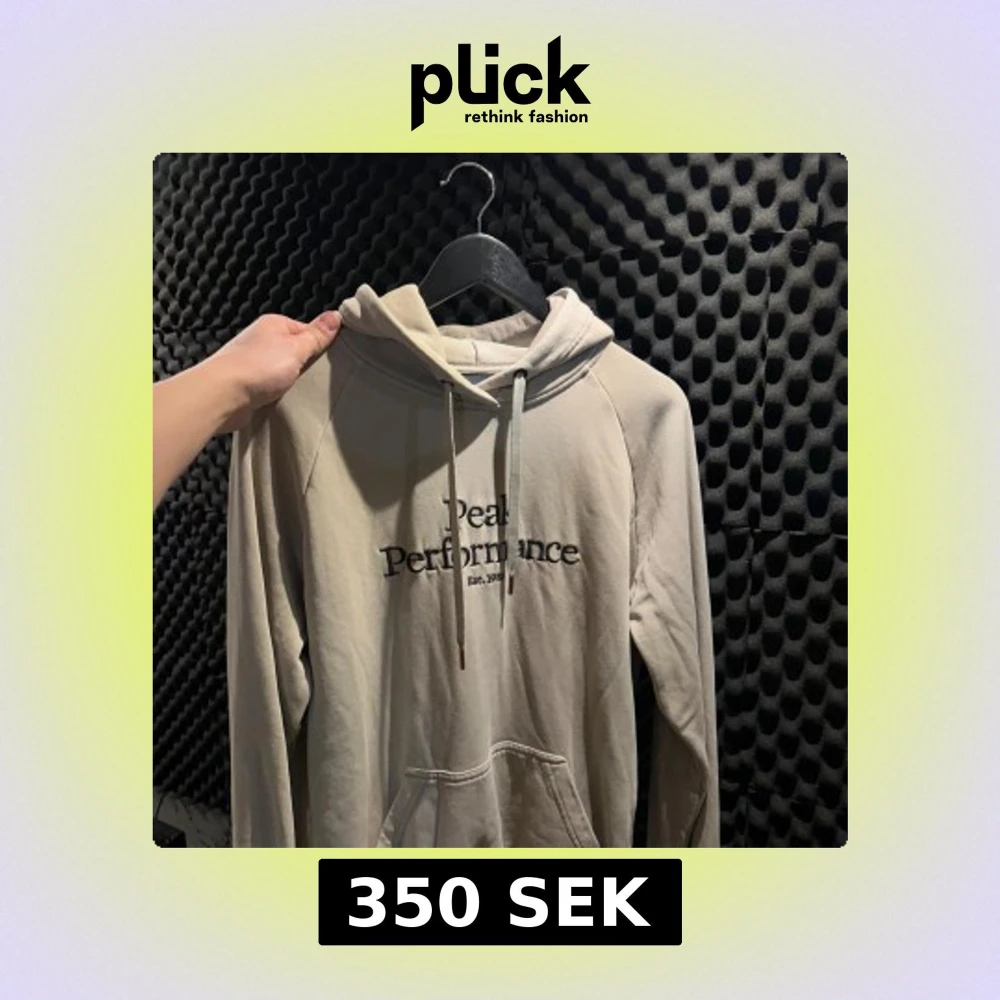 Snygg beige hoodie från Peak Performance med broderad logga på bröstet. Tröjan har huva med snörning, känguruficka och mjukt fleecefoder på insidan. Perfekt för chill dagar och enkel att matcha med jeans eller joggers.
