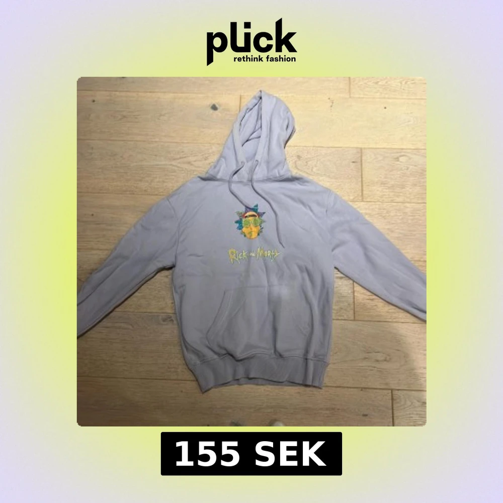 Ljuslila Rick and Morty hoodie från Pull&Bear i storlek XS. Stor färgglad print både fram och bak med coolt motiv och logga. Klassisk känguruficka, snörning i huvan och mjukt bomullsmaterial. Perfekt för dig som älskar serien och vill sticka ut.