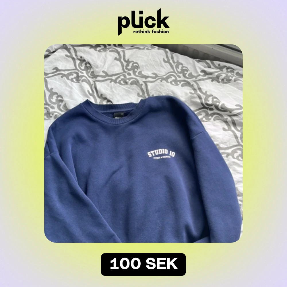 En bekväm blå sweatshirt från Studio 10 med texten 'STUDIO 10 FITNESS & GYM' tryckt på bröstet. Tröjan har långa ärmar och ribbstickade muddar vid ärmslut och nederkant.