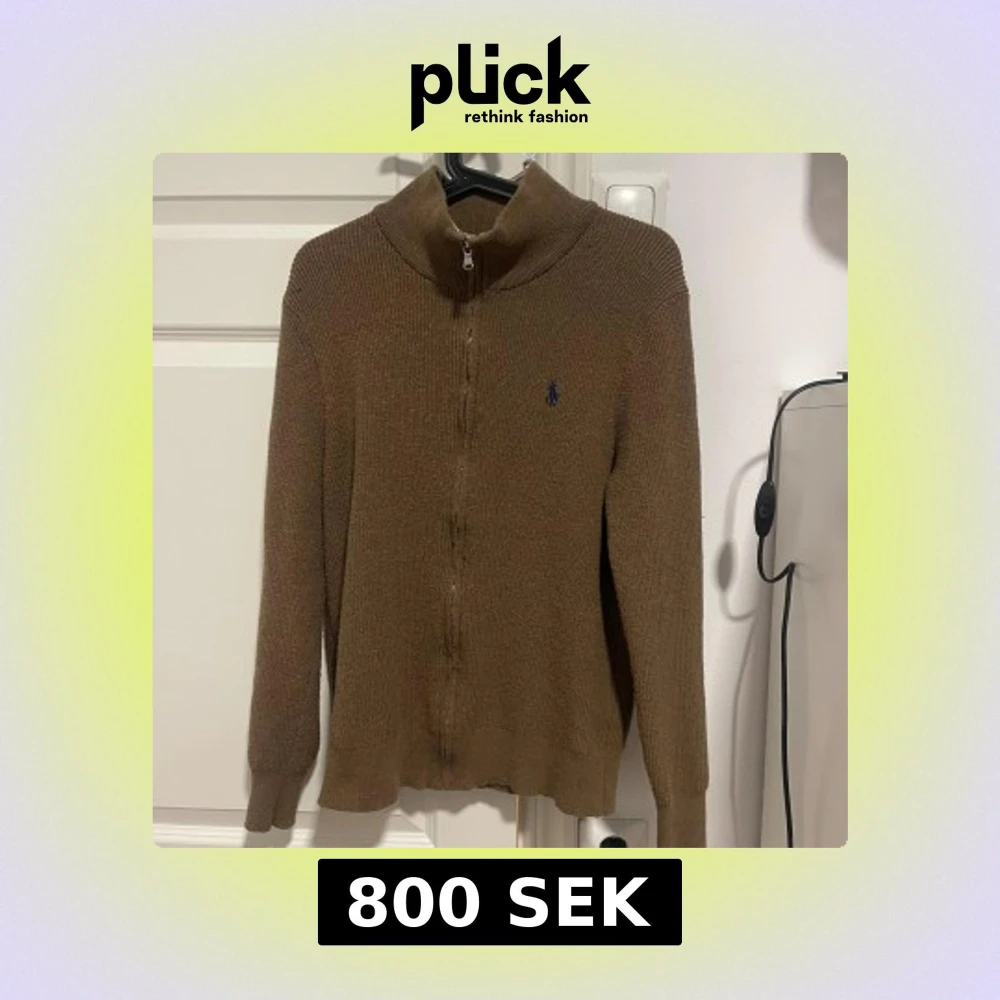 Säljer en snygg brun stickad tröja från Ralph Lauren med dragkedja och långärmad design. Perfekt för kyligare dagar med sin stilrena look och bekväma passform. Den har en liten broderad logga på bröstet.