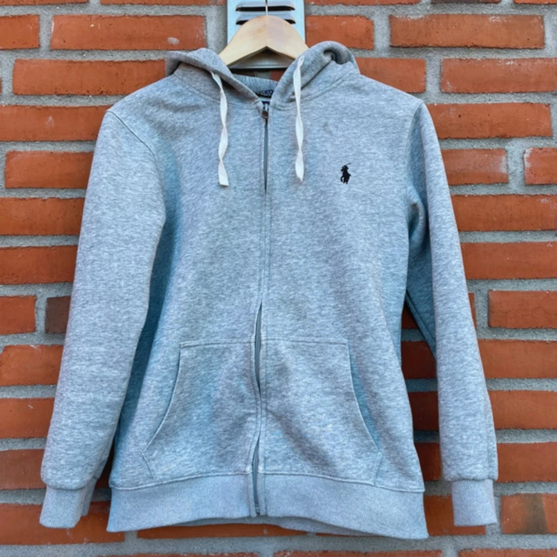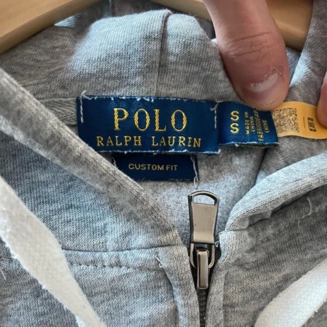Grå hoodie från Polo Ralph Lauren med dragkedja och huva. Klassisk svart broderad logga på bröstet, vita snören och två fickor framtill. Mjuk och skön i bomullsmix, perfekt för chill dagar. Custom fit-modell.