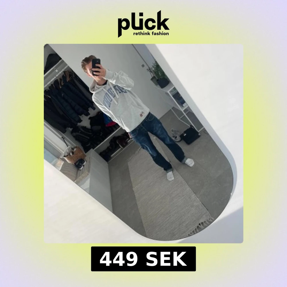 Snygg grå hoodie men blå text från Super Dry. Jag på bilden är 178