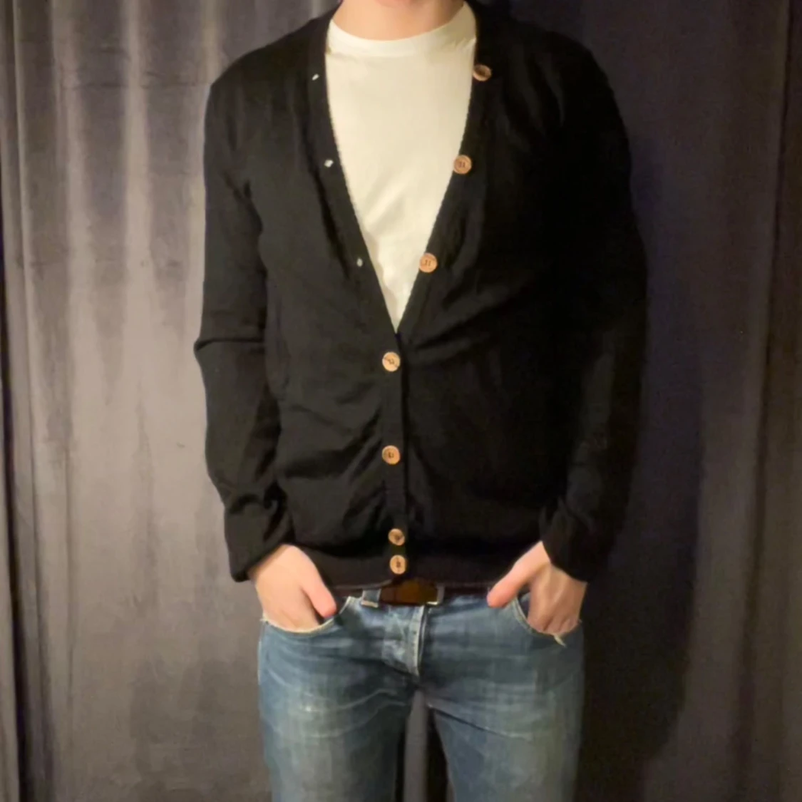 Säljer en snygg cardigan i extremt skönt material. Skicket är 7/10 men inga hål eller större fel! Storlek M, är 180 70 kg! Hör av dig om du har några frågor!!