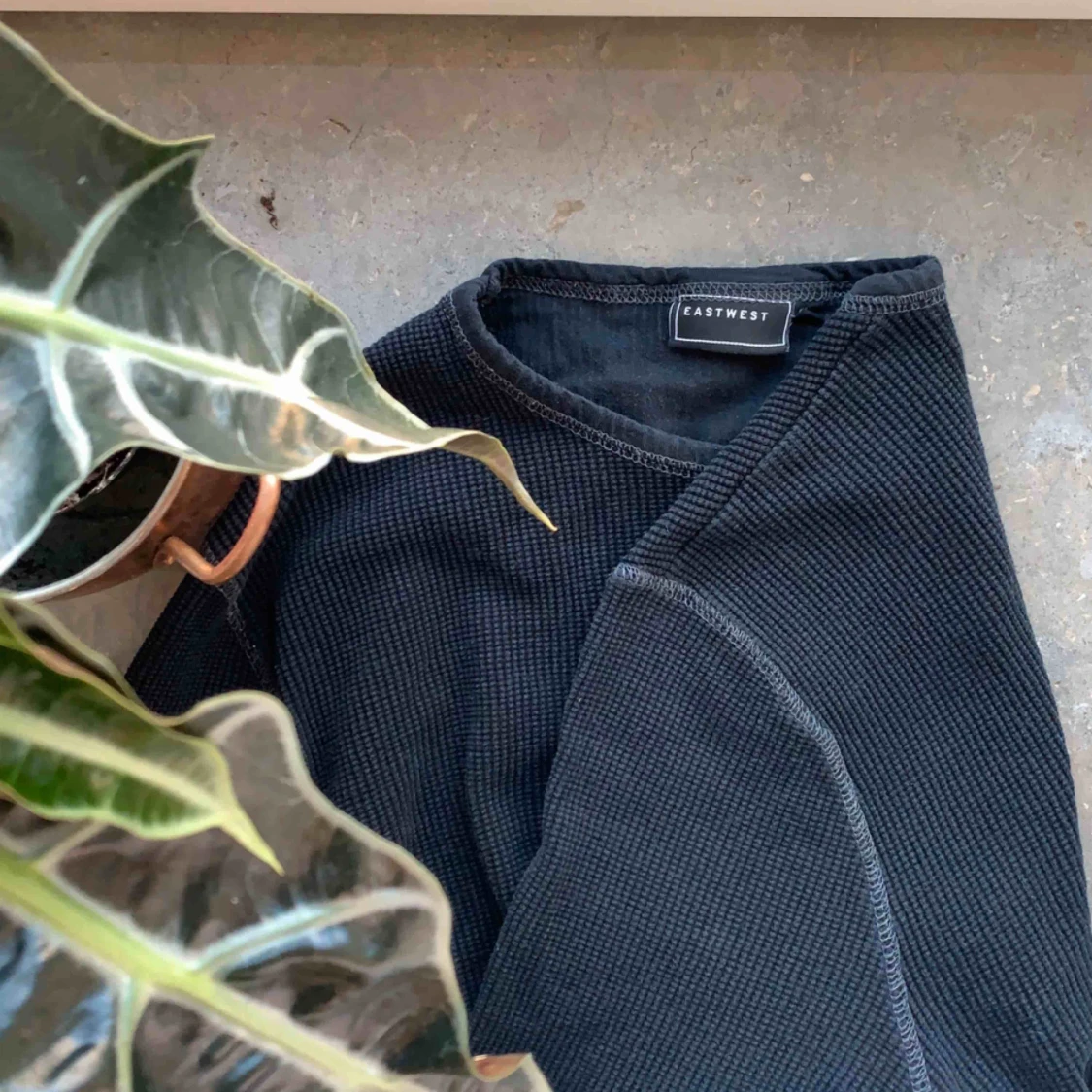 Tröja från eastwest, säljer billigt pga använd och urtvättad. Sömmar i grå och rafflat materialet. 🌱 Möts upp i Stockholm, om skickas står köparen för fraktkostnaden