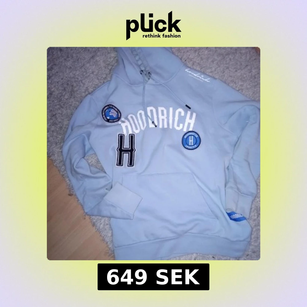 Hej! Jag säljer min baby blue hoodrich hoodie eftersom det inte är min stil längre inga skador på den förutom ett pyttelitet hål som knappast syns vid fickan vilket du kan se på tredje bilden😊 tröjan säljs inte längre förutom på secondhand hand butiker o appar, priset går att diskutera!
