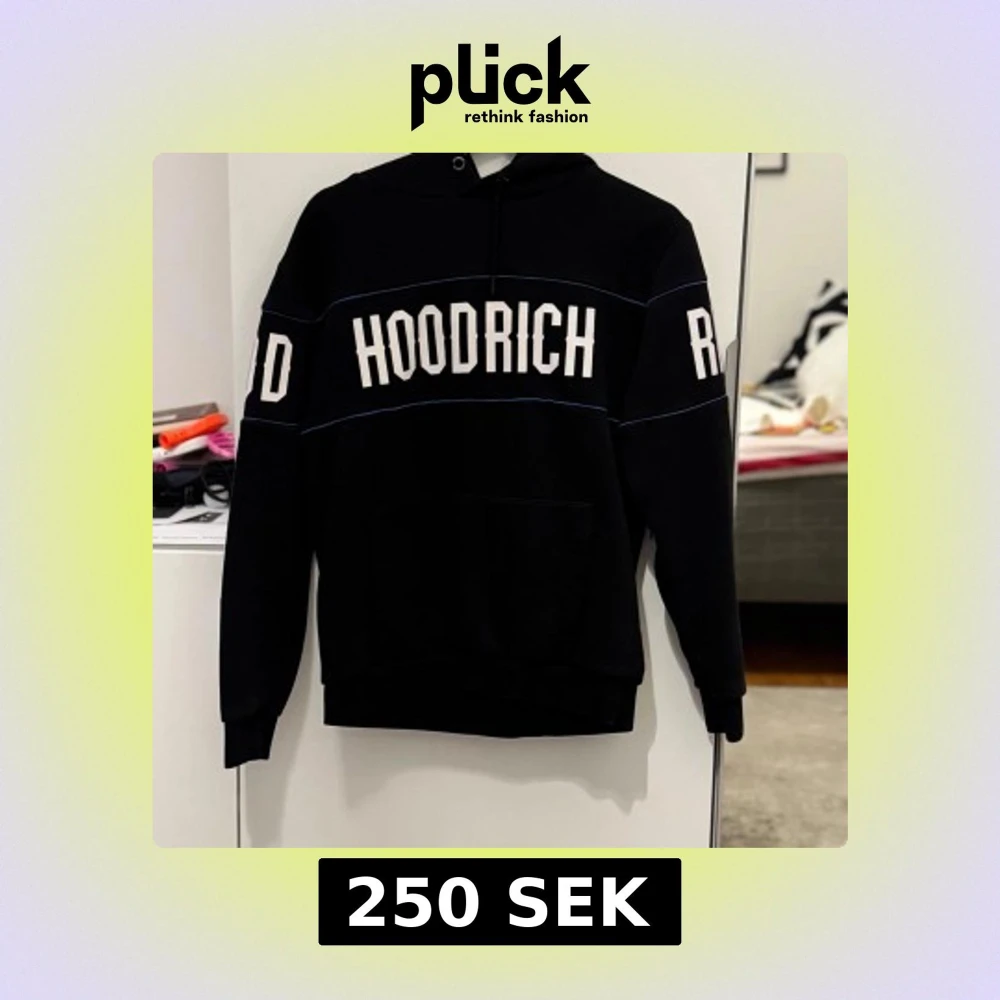 Snygg svart hoodie och matchande byxor från Hoodrich. Hoodien har en stor logga på bröstet och ärmarna, bra pris original 1299 men säljer dom för 500 och har bara andvänt dom några gånger Skriv om frågor och pris kan diskuteras👍