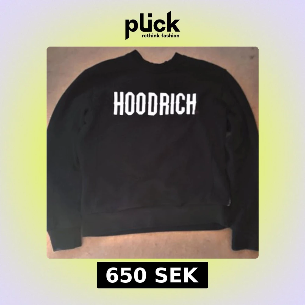 Svart sweatshirt från Hoodrich med stort vitt tryck på ryggen. Klassisk crewneck-modell med ribbade muddar vid ärmslut och midja. Perfekt för dig som gillar streetwear och vill sticka ut med en bold logga.