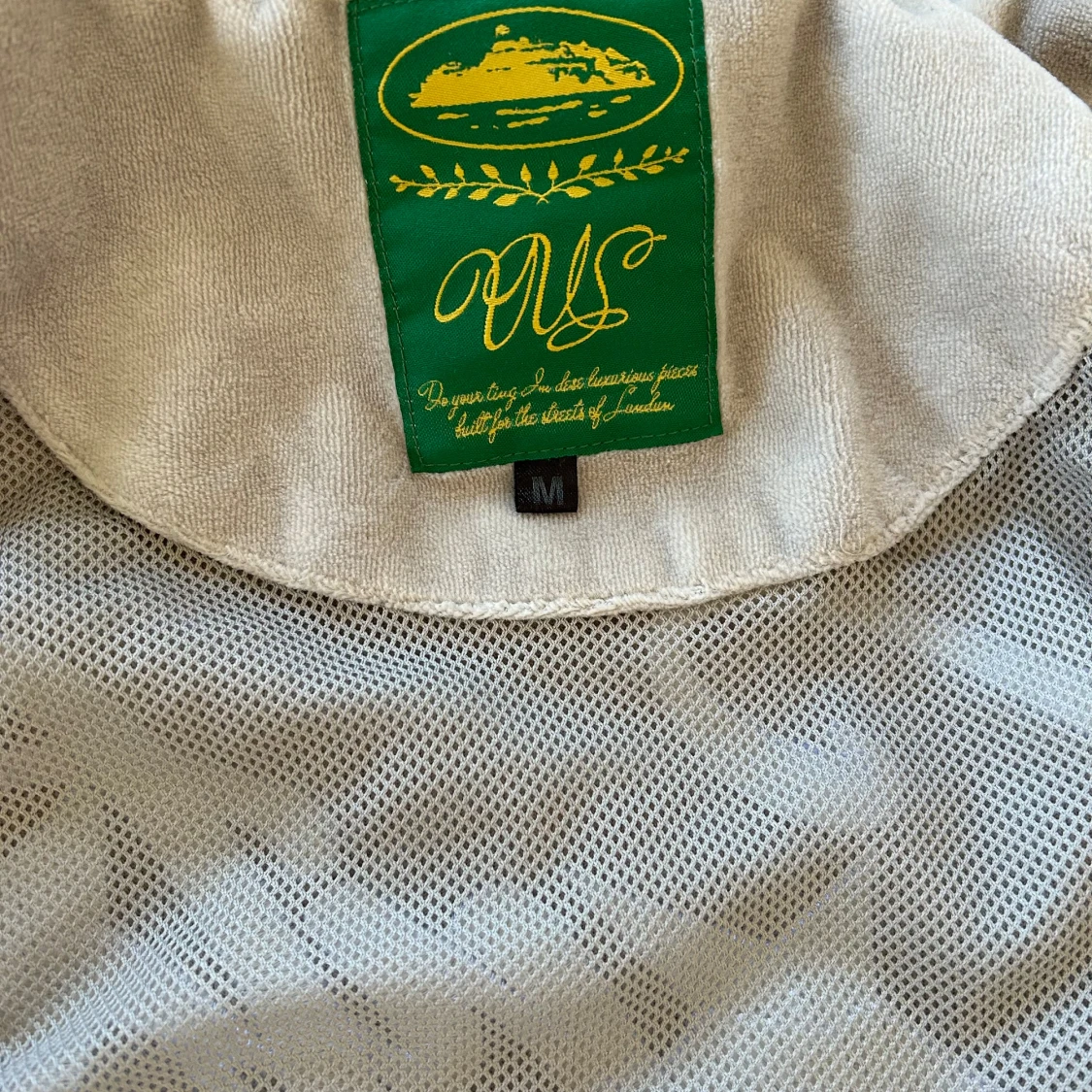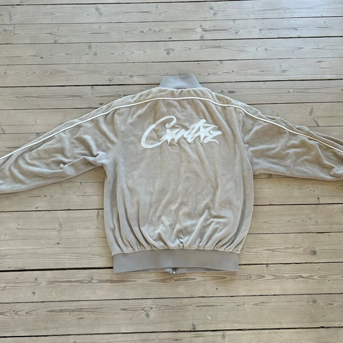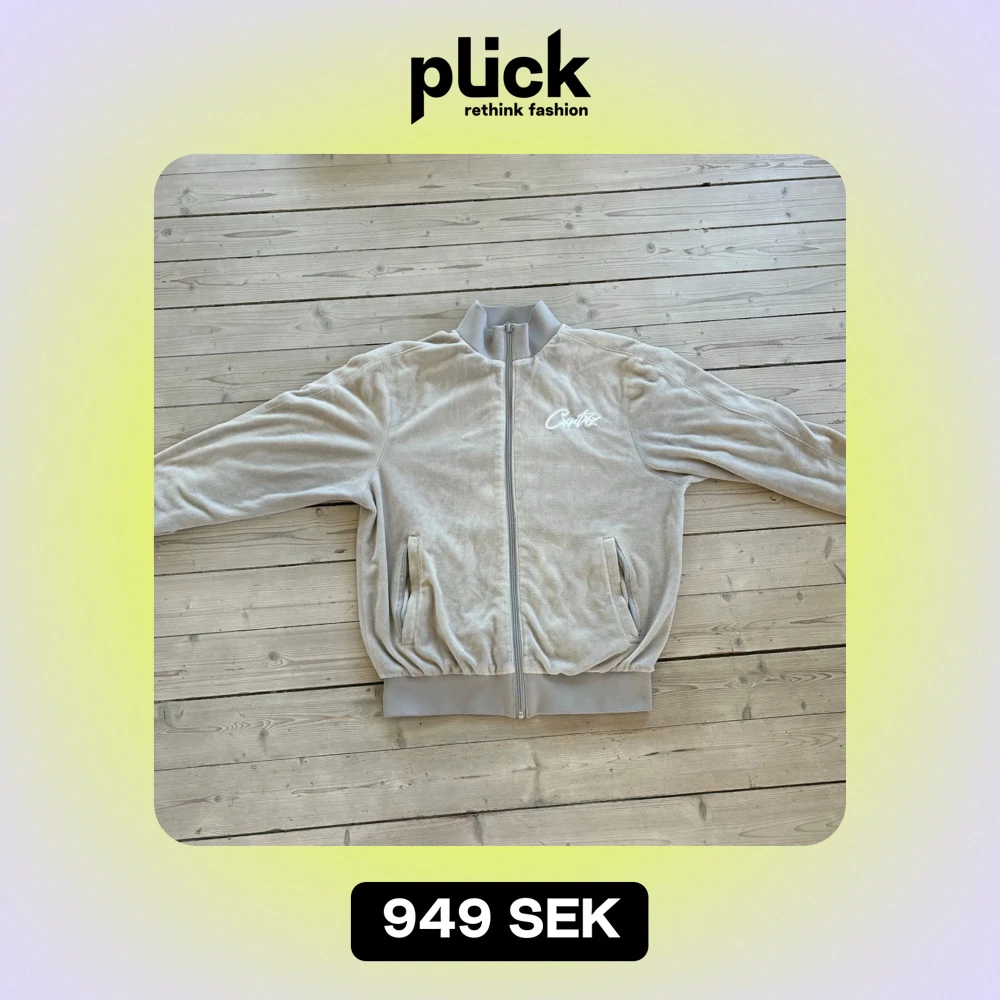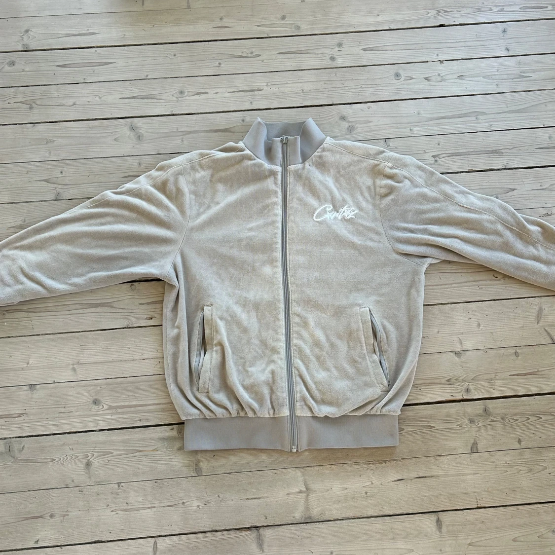 Säljer en snygg velourtröja från Cortez i storlek M. Jackan har en dragkedja framtill och är tillverkad i ett mjukt material. Den har långa ärmar och ribbade muddar vid ärmslut och nederkant. Perfekt för en avslappnad stil!