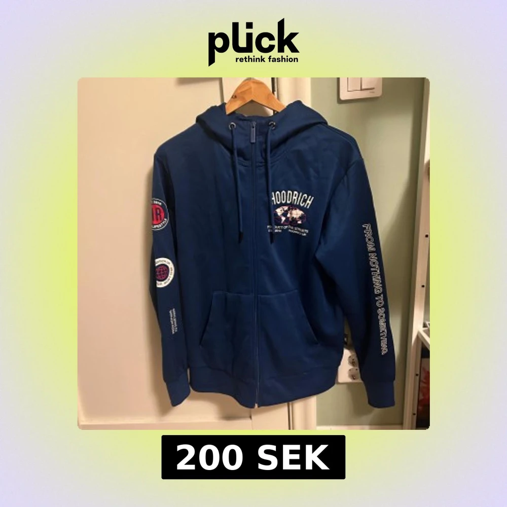 Blå hoodie från Hoodrich med vita tryckdetaljer på bröstet, ärmarna och huvan. Tröjan har dragkedja framtill, snörning i huvan och känguruficka. Snygga patches på ena ärmen och texten 'From Nothing To Something' på andra ärmen. Perfekt streetwear-vibe.