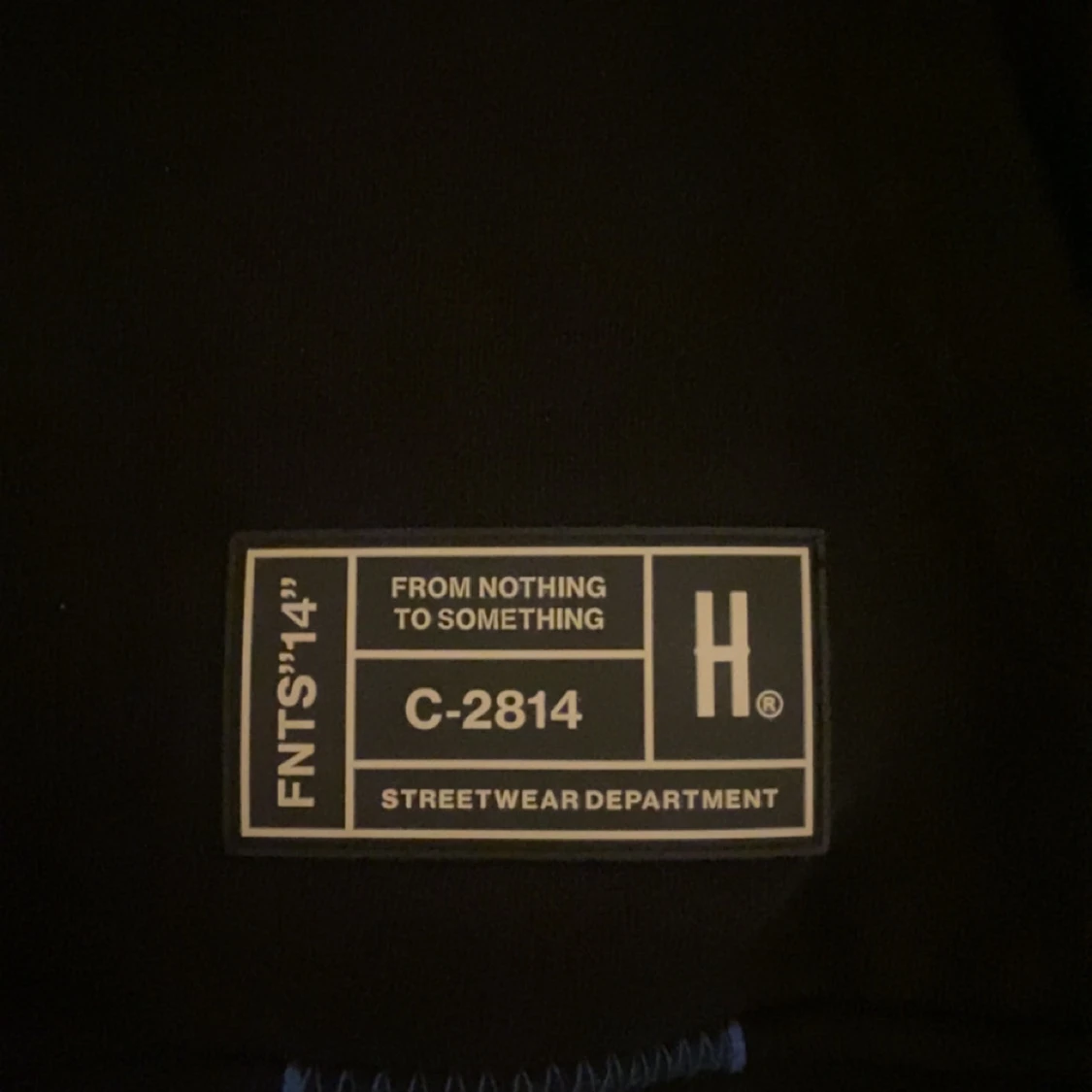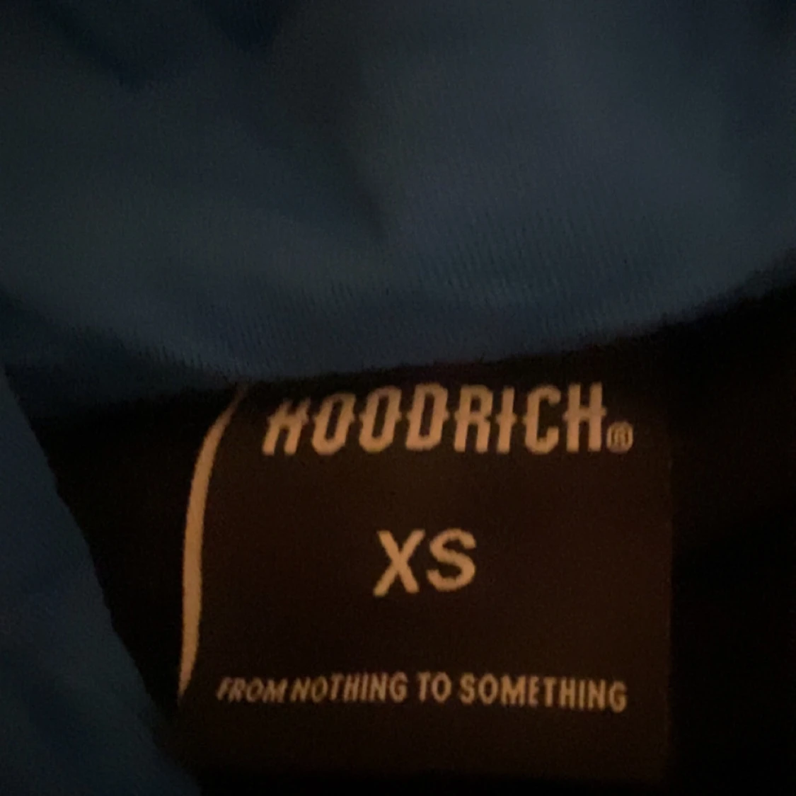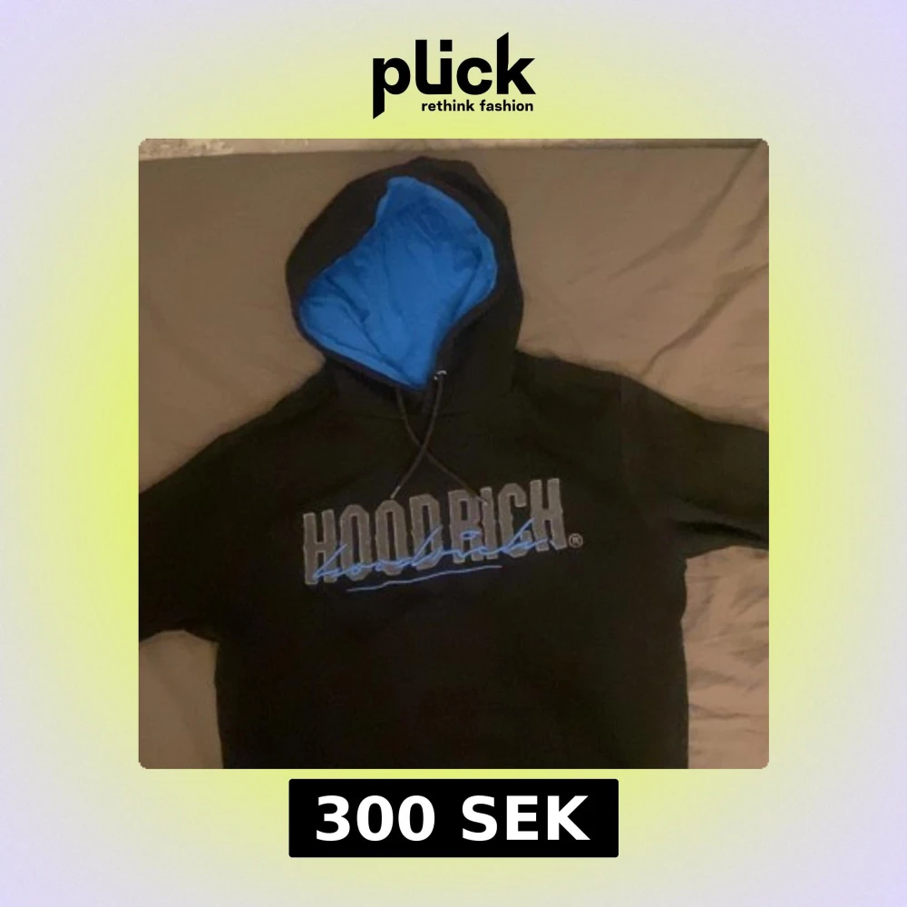 Säljer en svart hoodie från Hoodrich med blått foder i huvan och tryck på bröstet. Perfekt för streetwear-stilen. Huvan har dragsko för justering.
