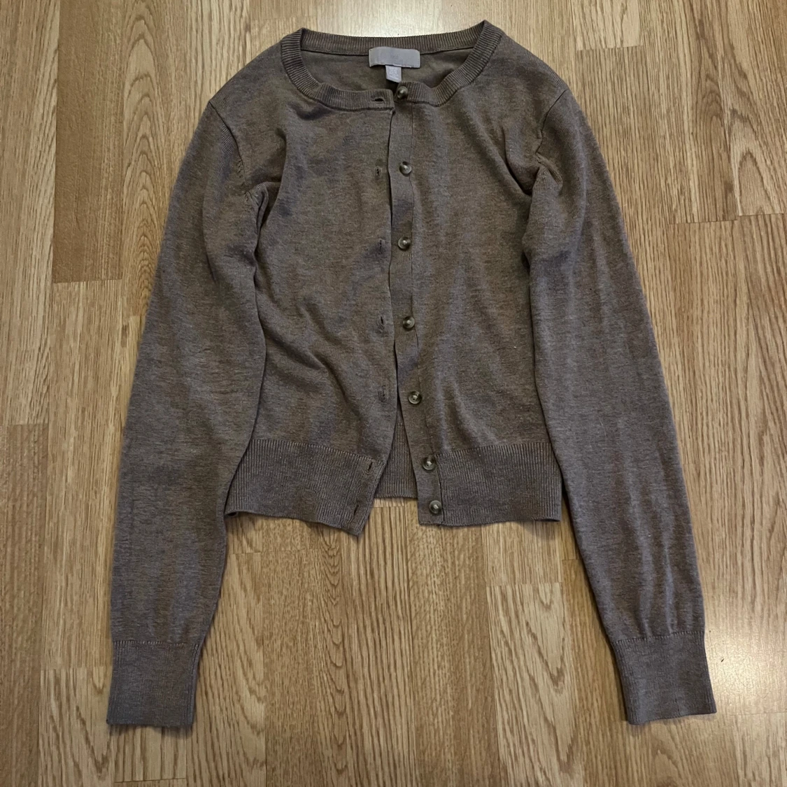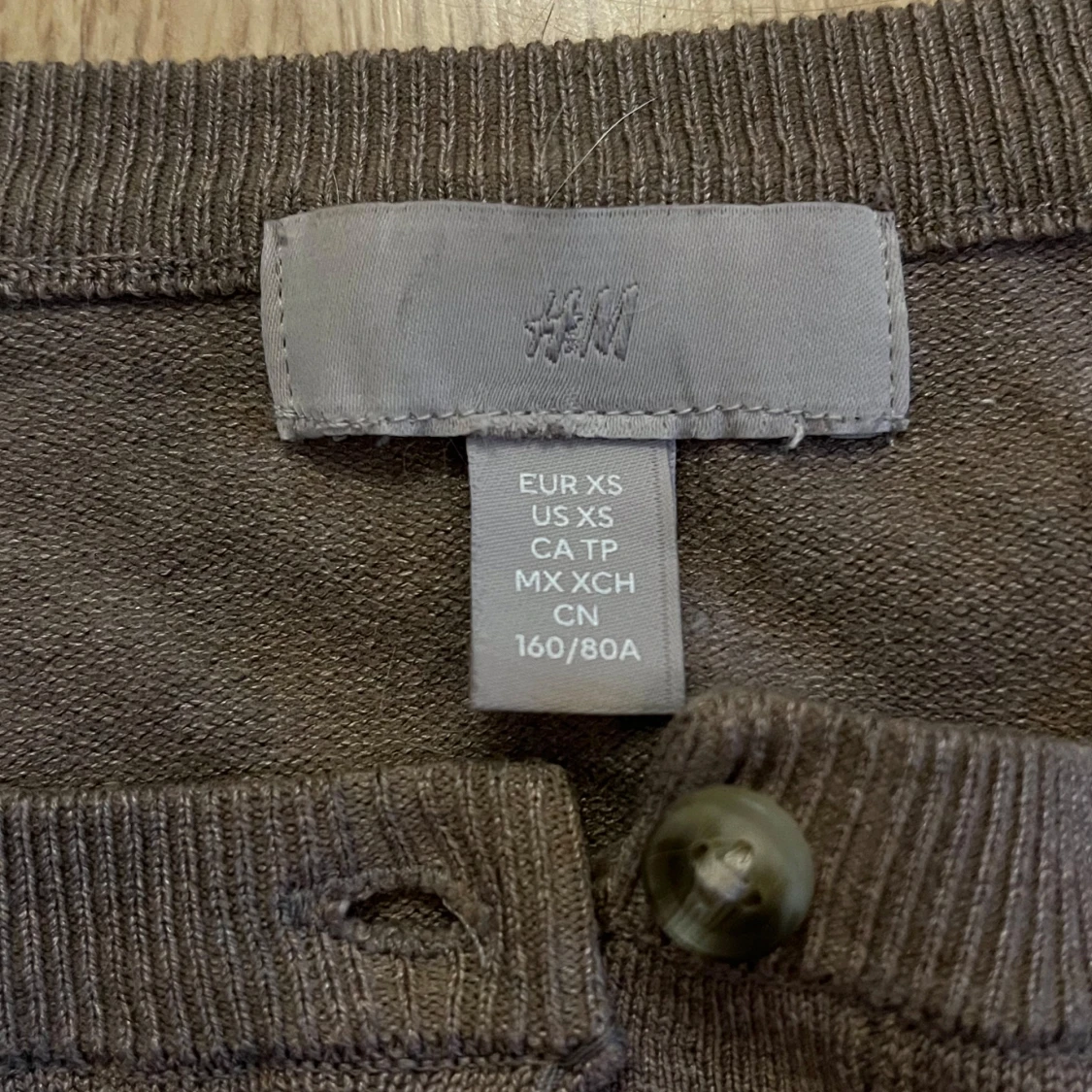 Jätte fin brun finstickad kofta från H&M i storlek XS. Koftan har rund halsringning, långa ärmar och knäppning framtill med matchande knappar.