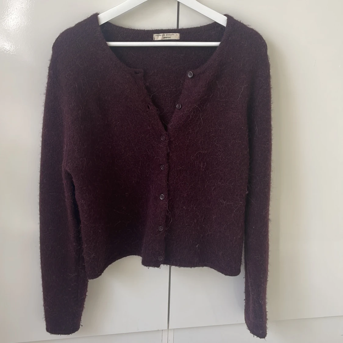 Mysig vinröd kofta från Gina Tricot med fluffig känsla. Koftan har rund halsringning, knappar framtill och långa ärmar. Perfekt att slänga över en t-shirt. Storlek L men sitter som S-xs. SLUTSÅLD