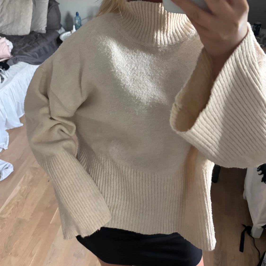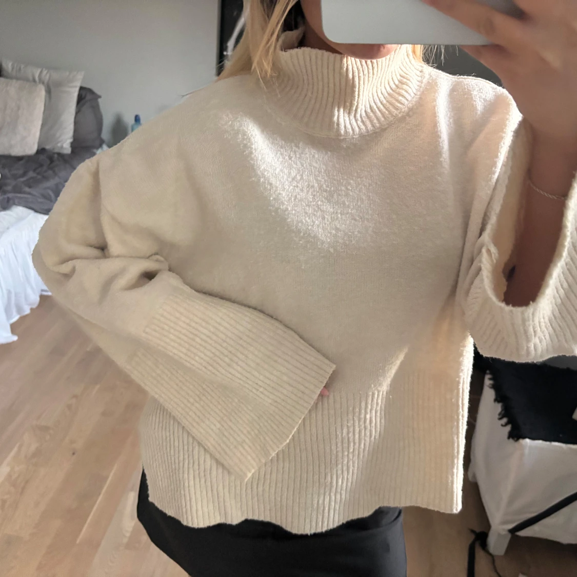Beige stickad polo tröja från Gina, perfekt till hösten! Passar s-m