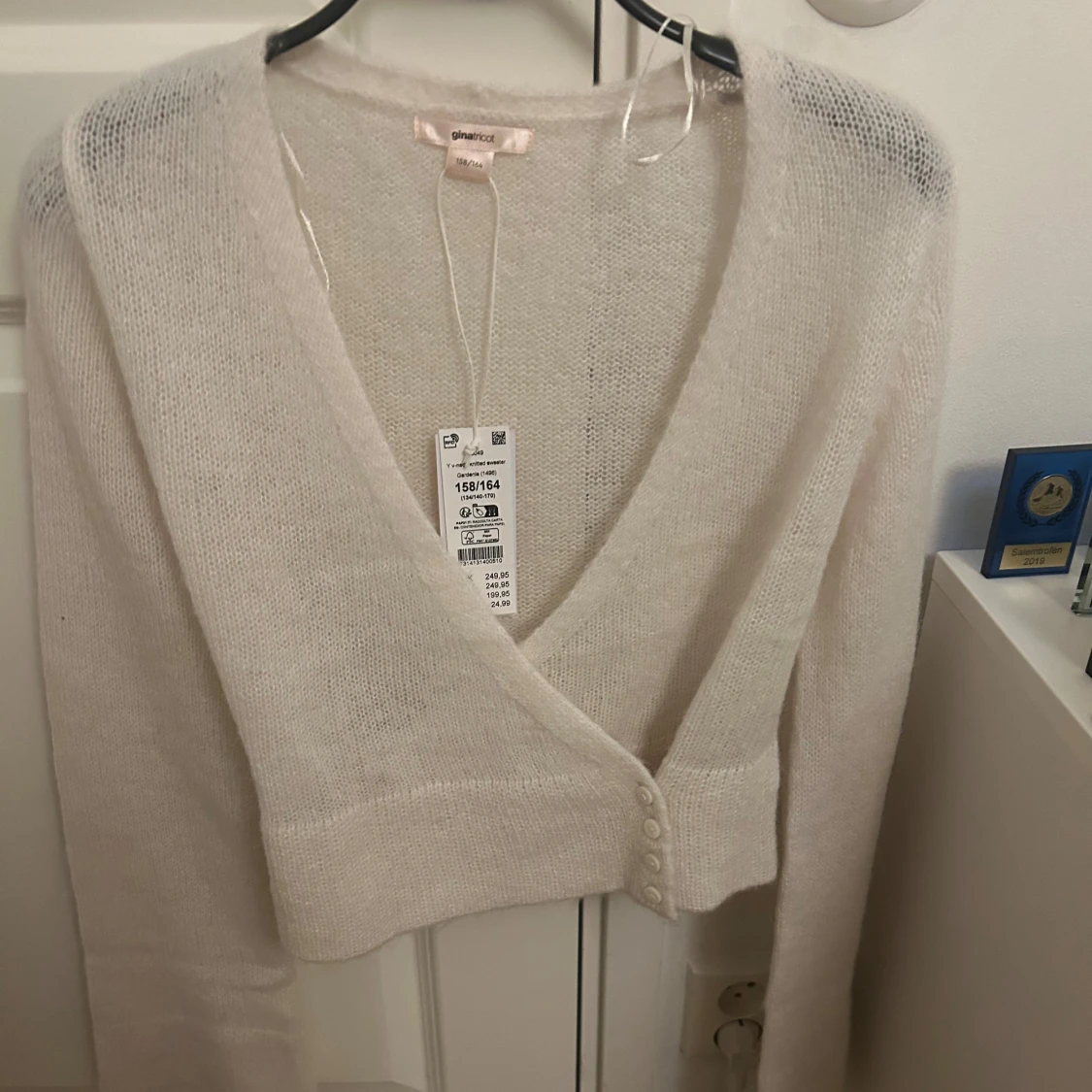 Supermjuk och fluffig ljusbeige kofta från Gina Tricot. djup v-ringning och fina knappar framtill. Långärmad och stickad i ett lätt material som känns lyxigt och passar perfekt till lager-på-lager.