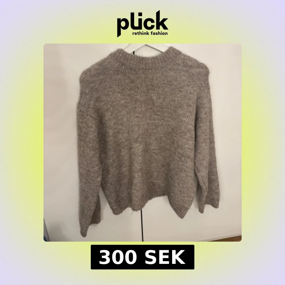 Mysig beige stickad tröja med rund halsringning och långa ärmar. Tröjan har en lite lös passform och ribbade muddar vid ärmslut och nederkant. Perfekt för lager-på-lager under kyliga dagar.