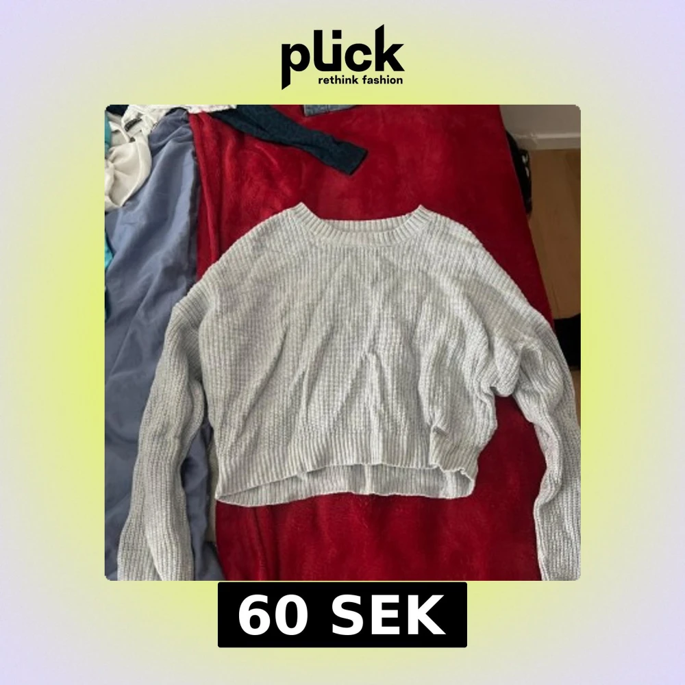 Säljer en snygg grå stickad tröja från Hollister. Tröjan har en croppad design med långa ärmar! Perfekt för hösten eller en sen sommar kväll💓