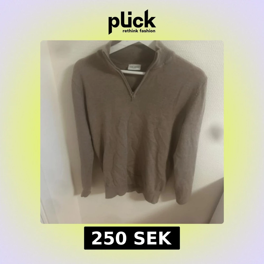 Snygg beige tröja från John Henric med half zip och hög krage. Tröjan är långärmad och har en stilren, klassisk look som passar perfekt till jeans. Den är liten i storlek Hör av dig vid minsta fråga!