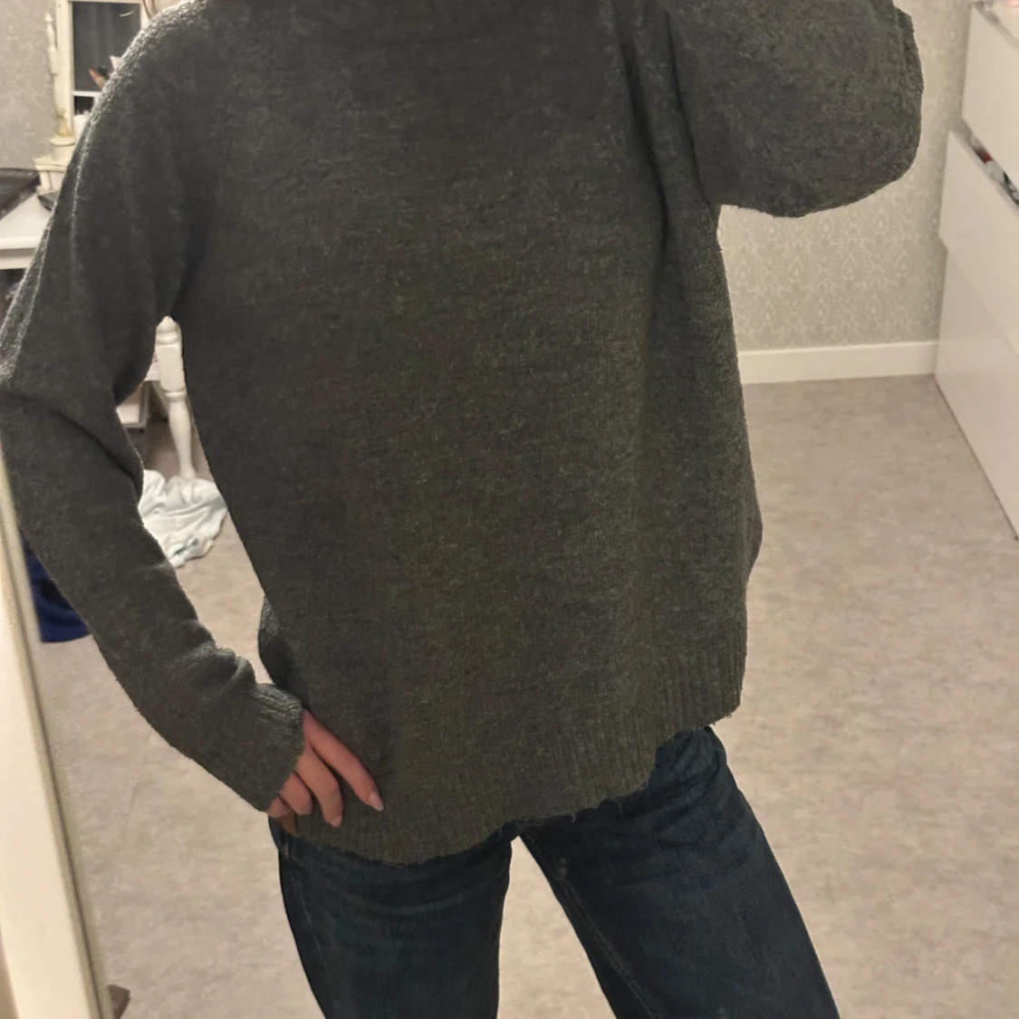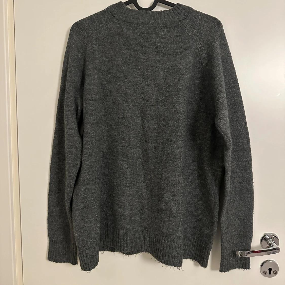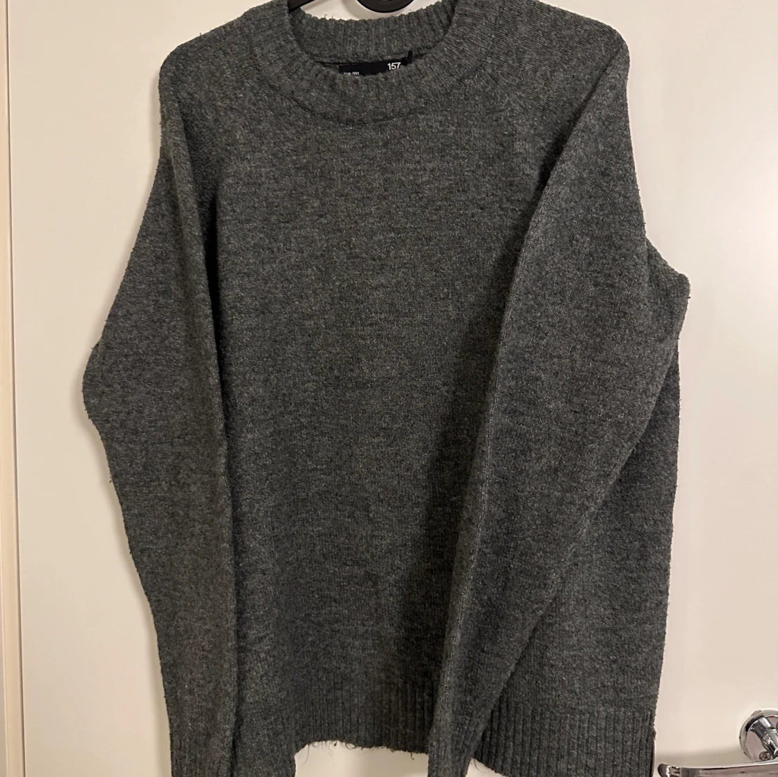 Mysig mörkgrå stickad tröja från lager 157 med rund halsringning och ribbade muddar. Perfekt till hösten🍂🤍