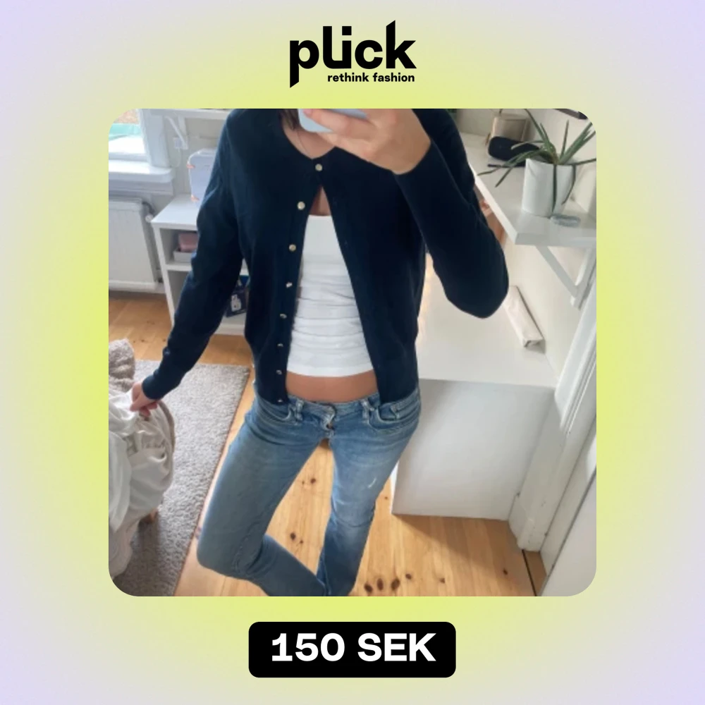 Säljer denna mysiga koftan då den inte används! Från Lindex och använd ett fåtal gånger. Guldiga knappar och lite tunnare material. Nypris ca 400kr.