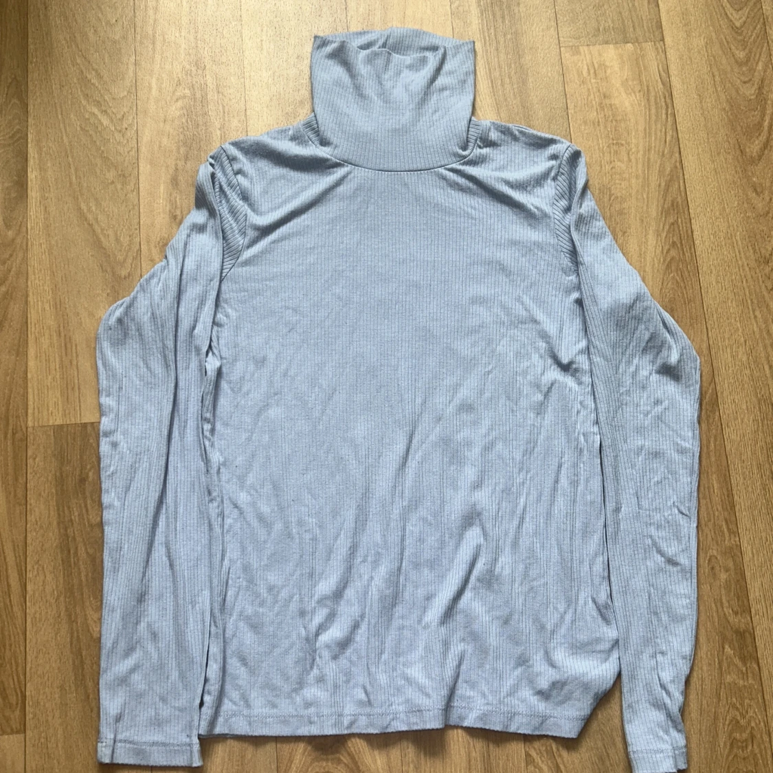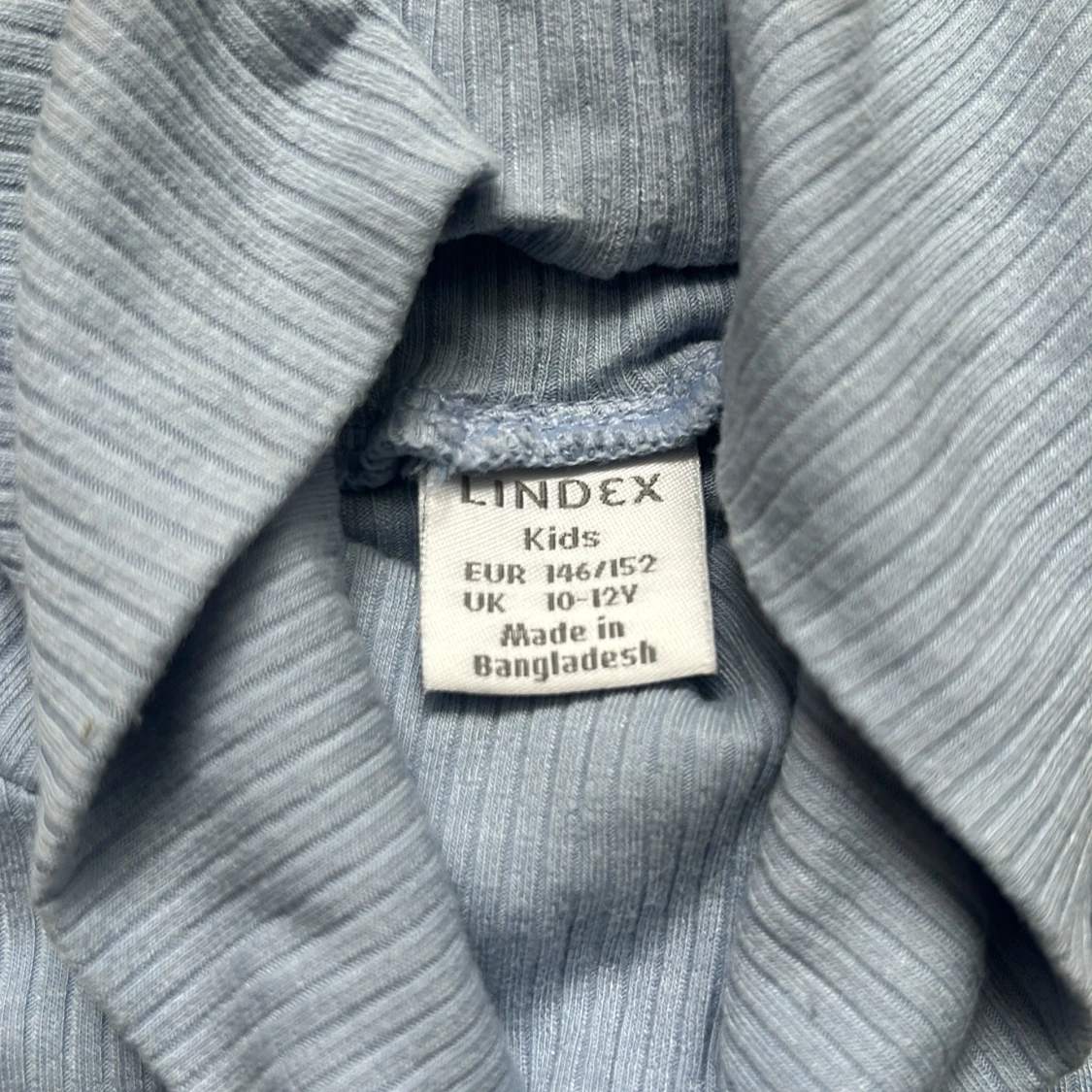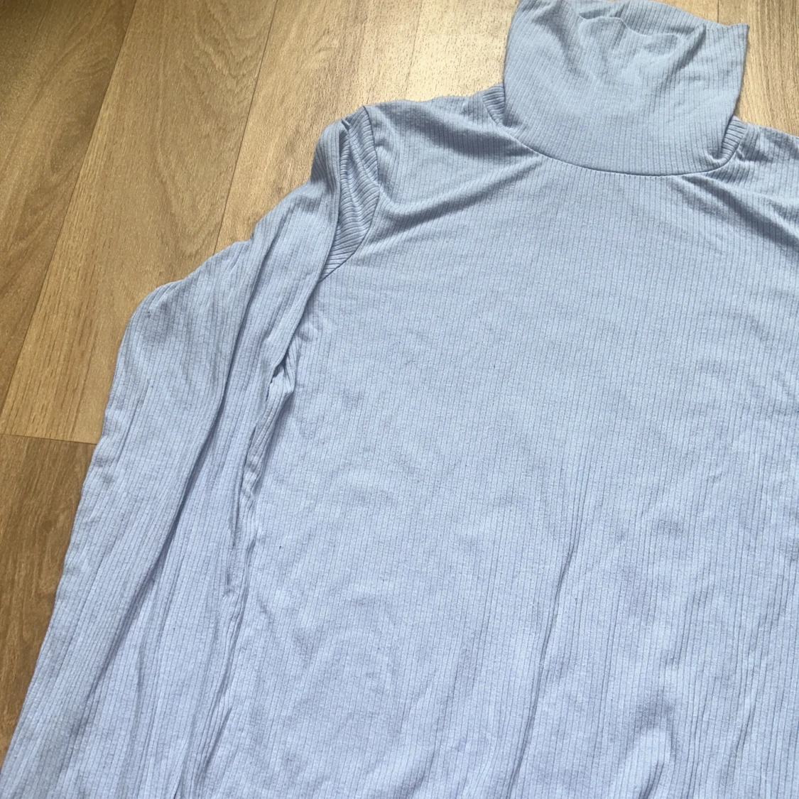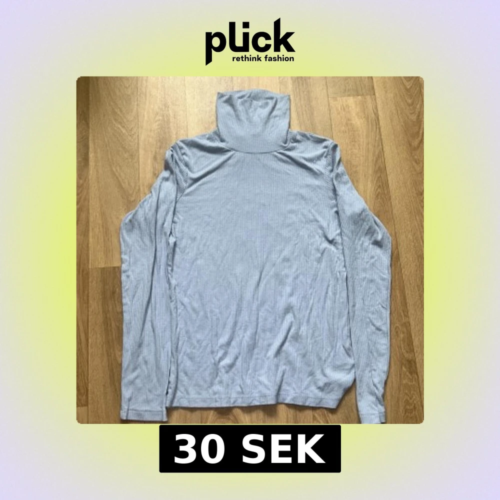 ljusblå ribbad polotröja från Lindex. Tröjan har lång ärm och hög polokrage. Sparsamt använd + inga defekter!
