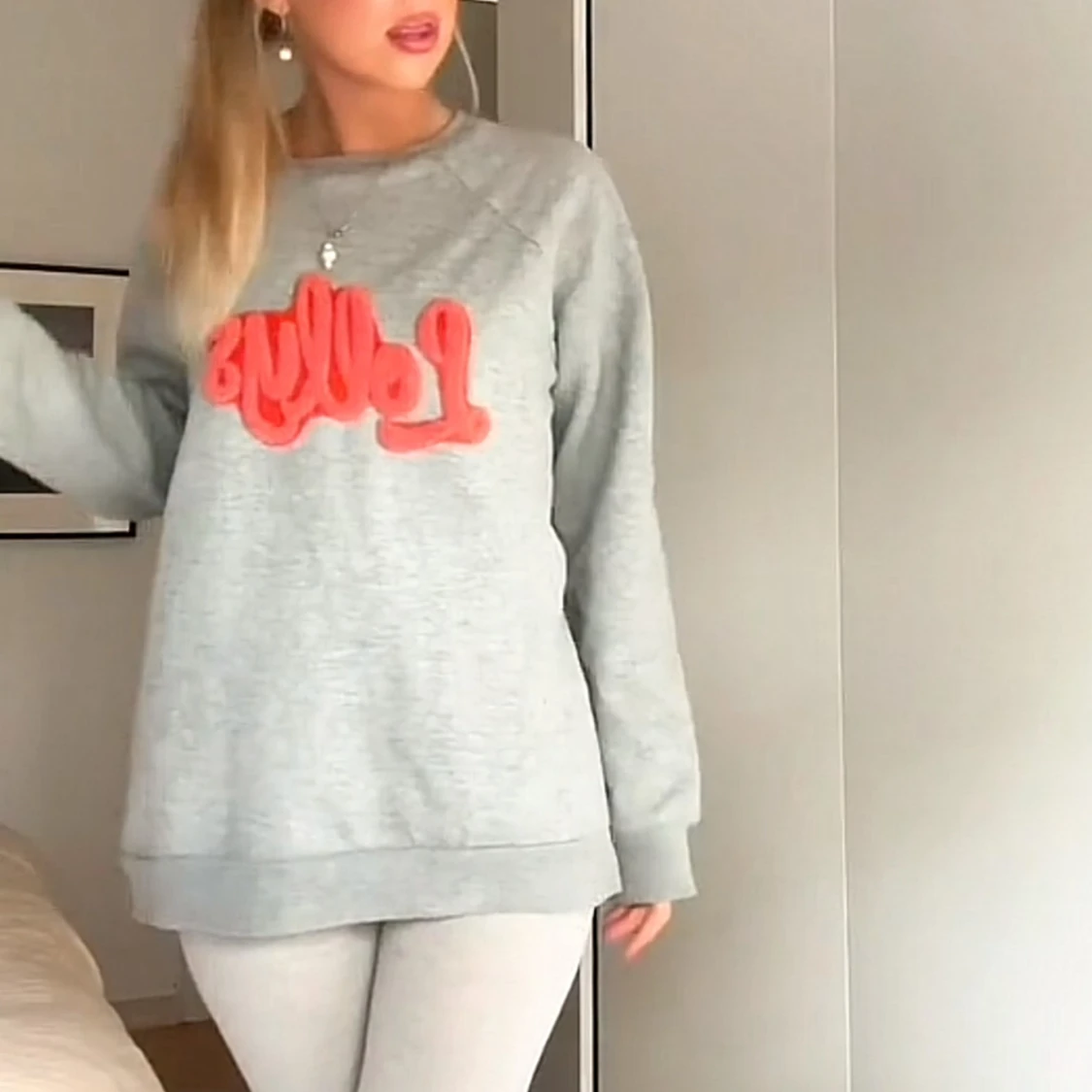 Grå sweatshirt från Lollys Laundry med superfint tryck framtill! I strl M, passar mig som vanligtvis har xs-s