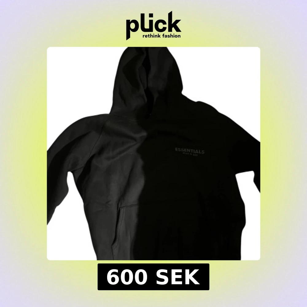 Svart hoodie från Essentials Fear of God med diskret logga på bröstet och patch på huvan. Klassisk känguruficka framtill och stor huva. Perfekt för en chill och stilren look.