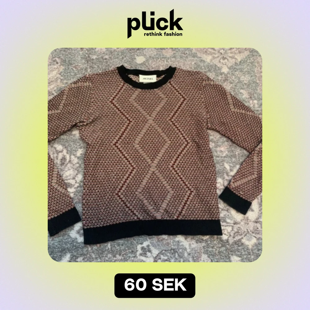 En tröja perfekt för hösten med lite Argyle mönster i rött vitt och mörkblått/svart men framstår mer som röd/brunt🍂från Monki i storlek xs/s.