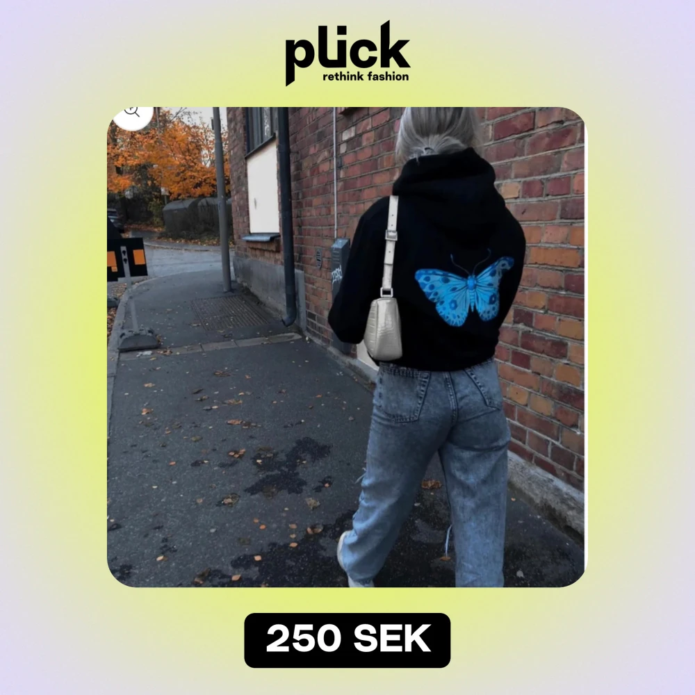 Säljer en svart hoodie med en stor blå fjäril på ryggen, det är även en liten fjäril på framsidan🫶🏼Märket är lite slitet men fortfarande i bra skick. Säljs för 250kr (nypris ca 550)💗Är i M men passar även S