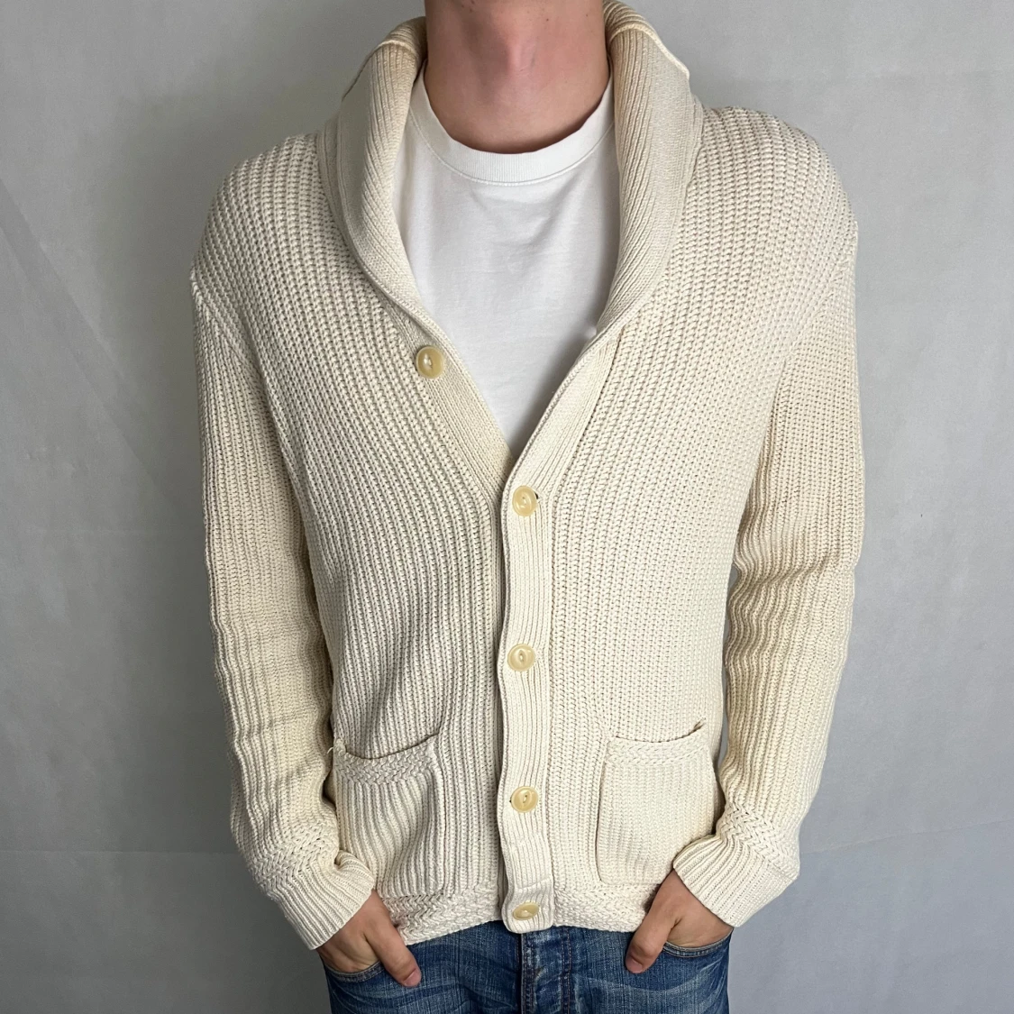 Riktigt soft kofta av Ralph Lauren. Riktigt fint skick, står storlek S men passar M. Modellen är 185.