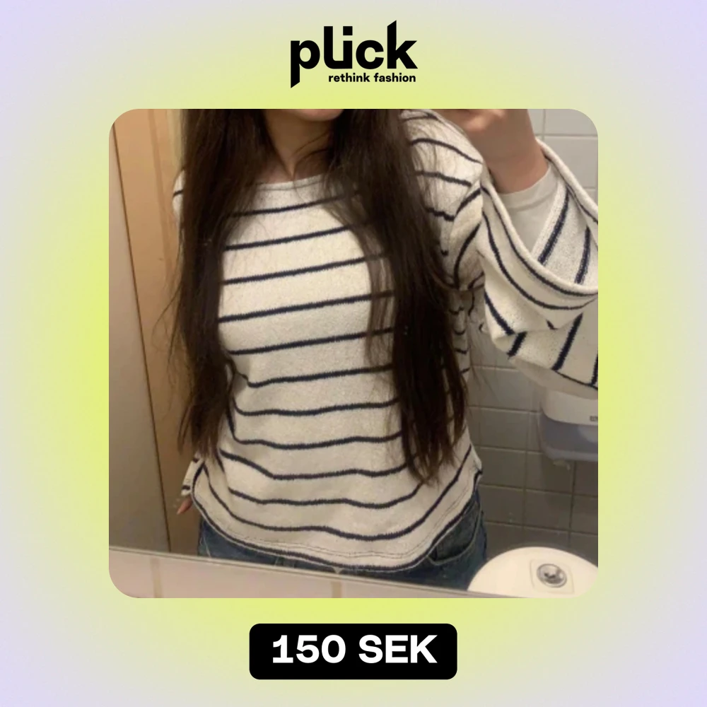 Säljer en superfin vit tröja med marinblå ränder. Den är långärmad och har en normal passform. Perfekt för både vår och höst! Tröjan är bekväm och passar perfekt till ett par jeans 🌟