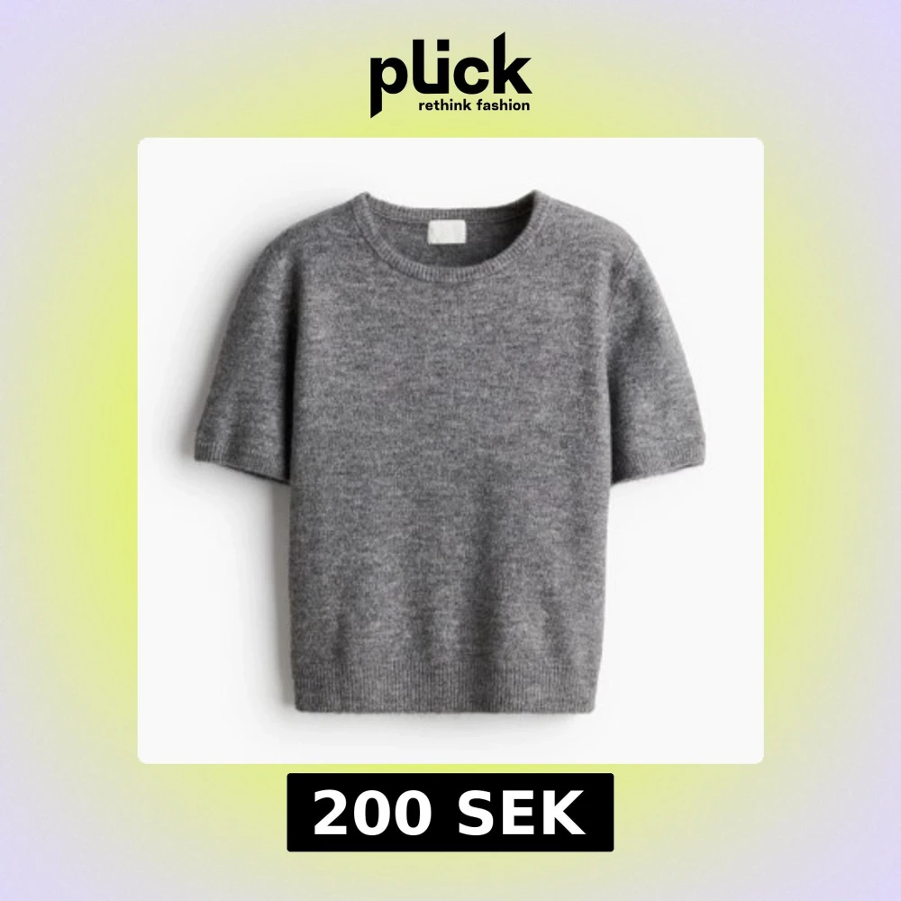 En stilren grå stickad tröja med korta ärmar och rund halsringning. Perfekt för lager-på-lager och funkar lika bra till jeans som kjol. Köptes på Kappahl, knappast använd. I storlek S💕
