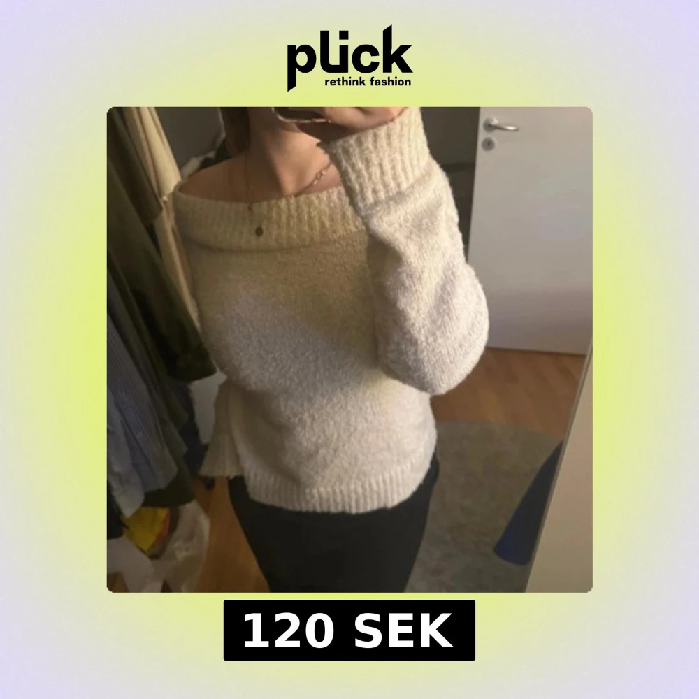 Mysig offshoulder stickad tröja i vit färg med bred ribbad kant upptill. Tröjan har lång ärm och en loose passform, perfekt för lager på lager under kyliga dagar. Enkel att styla med både jeans och kjol. Perfekt nu till hösten 😍
