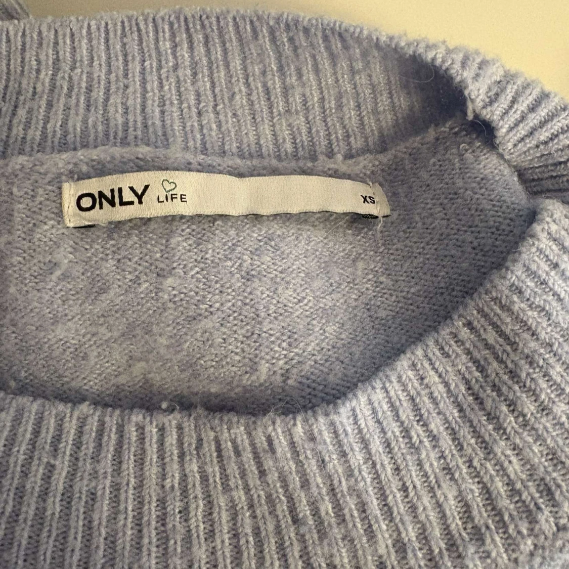 Mysig ljusblå stickad tröja från ONLY i storlek XS. Tröjan är knappt använd så bra skick!