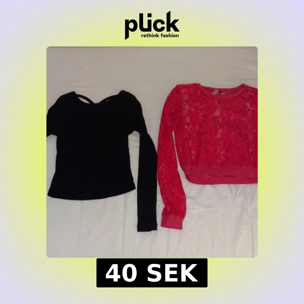 Jag säljer de här två tröjorna, en svart med band där bak (se bild tre), och en röd spets tröja, lappen på röda är borta så jag vet tyvärr inte vart den är ifrån. Svarta tröjan är från Kappahl i storlek 146/152. BÅDA för 40 kronor 💕