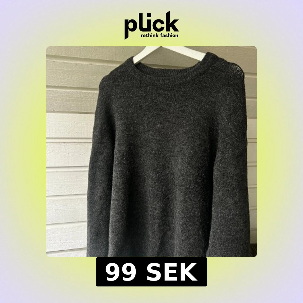 En mörkgrå ganska basic stickad tröja med rund hals och långa ärmar🌸