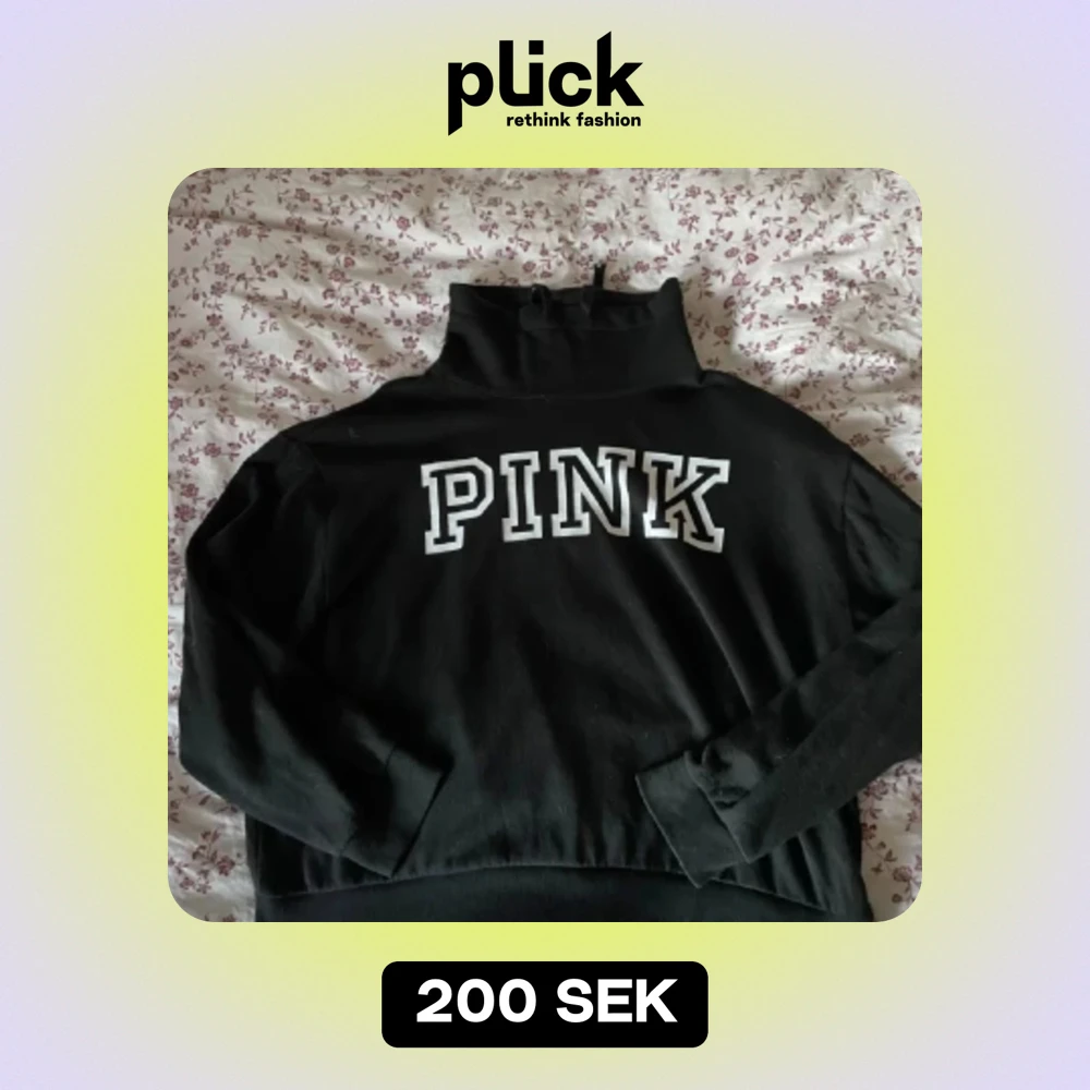 Läs info 💕💕Säljer en svart tröja med hög krage och texten 'PINK' i vitt på framsidan. Tröjan är långärmad och ser riktigt mysig ut för kyligare dagar. Är nopprig men inte något man ser på långt hål kan skicka bättre bilder sen har den en liten fläck
