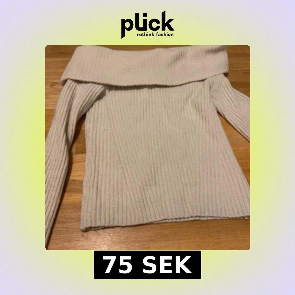Snygg offshoulder stickad tröja i ljus beige färg med ribbad struktur. Tröjan har långa ärmar och bred krage som sitter snyggt över axlarna. Perfekt för dig som gillar en chill och trendig look med lite extra edge.