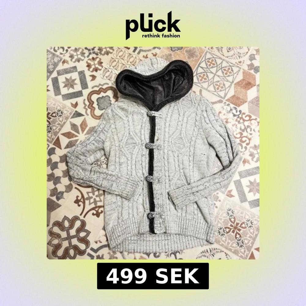 SÀljer en grÄ stickad hoodie med mysig mörkgrÄ fleecefoder i huvan. Tröjan har ett snyggt kabelstickat mönster, fyra knappar framtill och ribbade muddar. Perfekt för dig som gillar chill och stil pÄ samma gÄng. Storlek M.