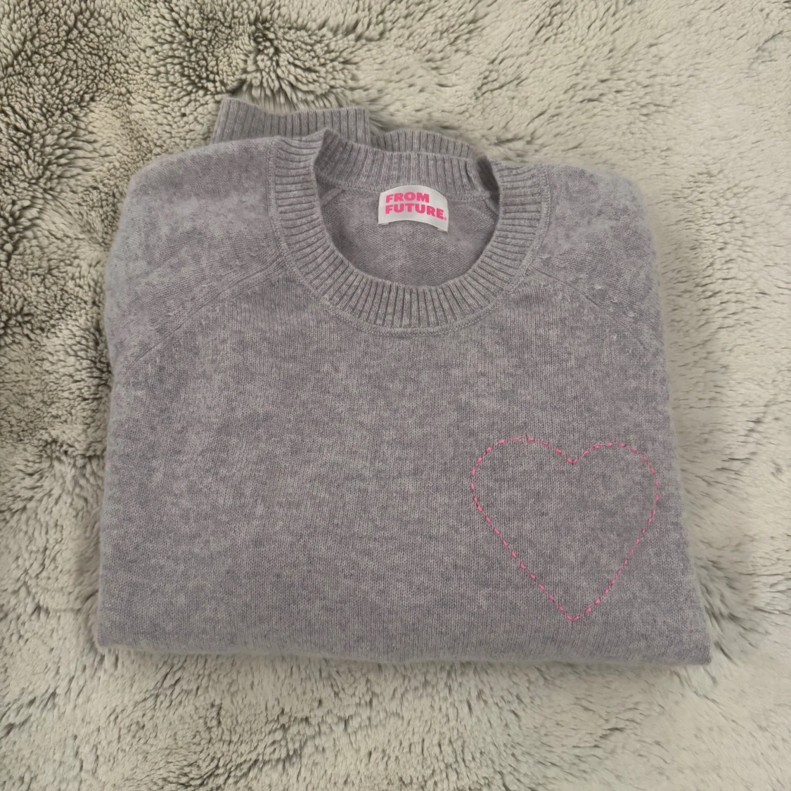 Ljusgrå tröja med rosa broderi hjärta från From Future. Använd ett fåtal gånger och i absolut nyskick. I storlek M, men passar även S. Nypris 2000 kr, mitt pris 1500.