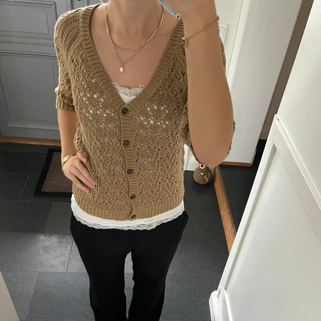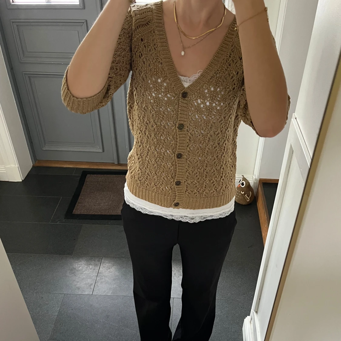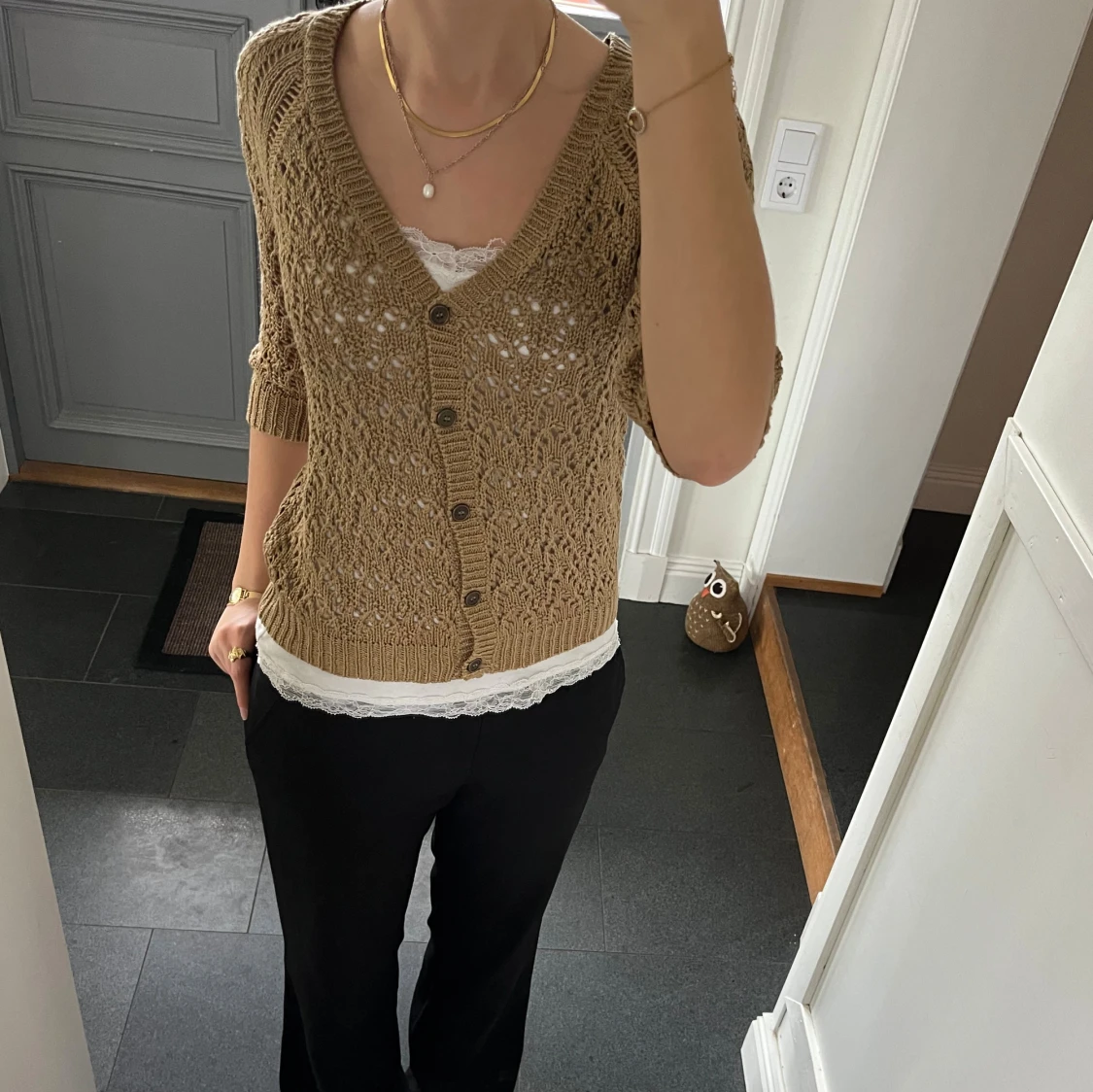 Beige trekvartsärmad stickad kofta från Zara i storlek M, skulle säga att den även passar S. Fibt skick. Använd gärna köp nu!