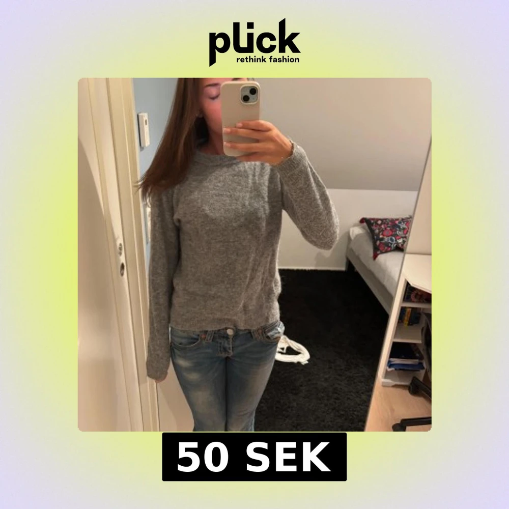 Mysig grå stickad tröja med rund halsringning och långa ärmar. Tröjan har en enkel och klassisk design med ribbade muddar vid ärmslut och nederkant. Perfekt för lager-på-lager och chill dagar.
