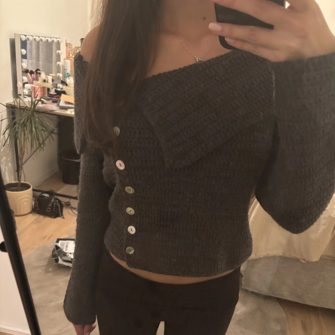 Mörkgrå stickad kofta från Zara